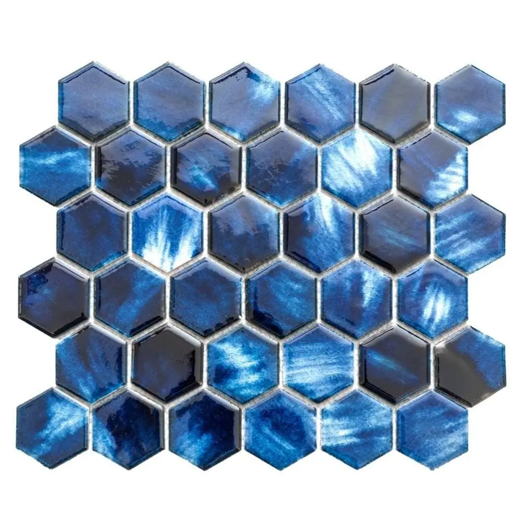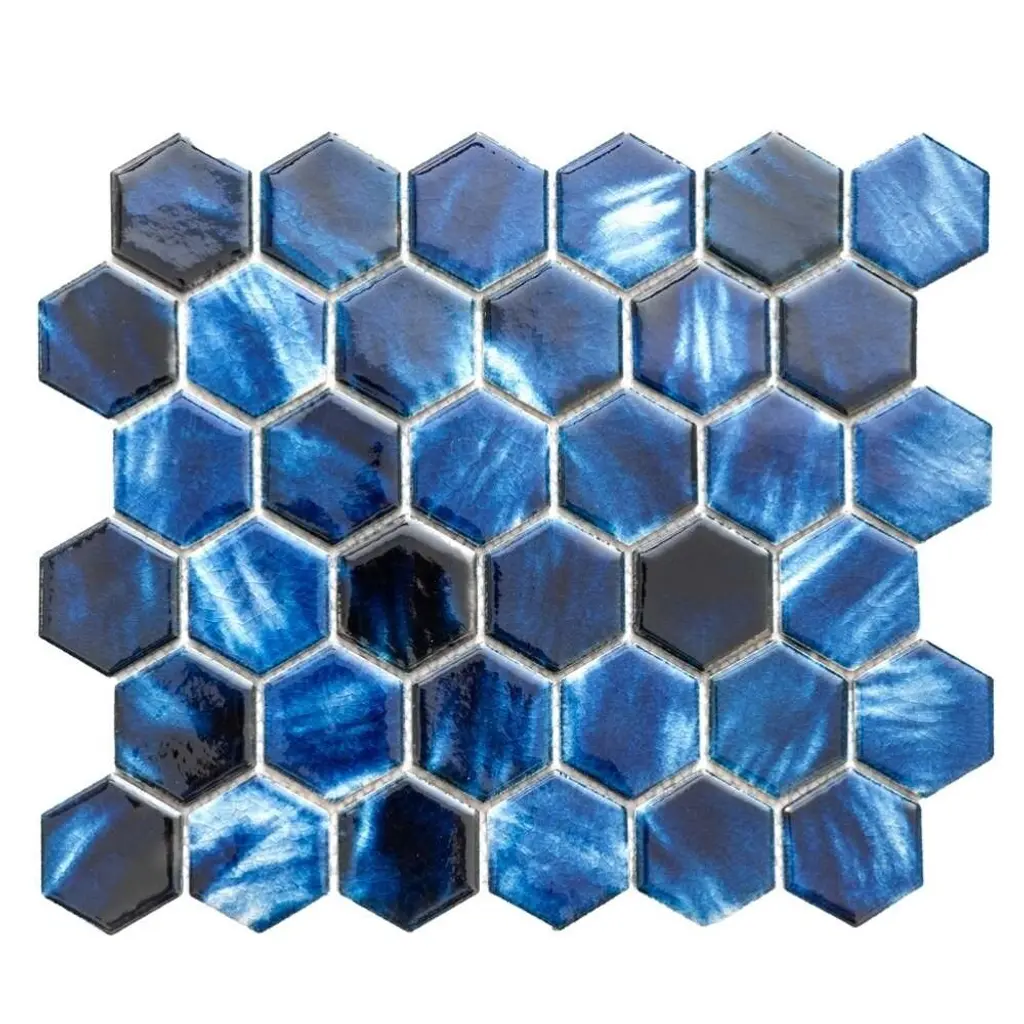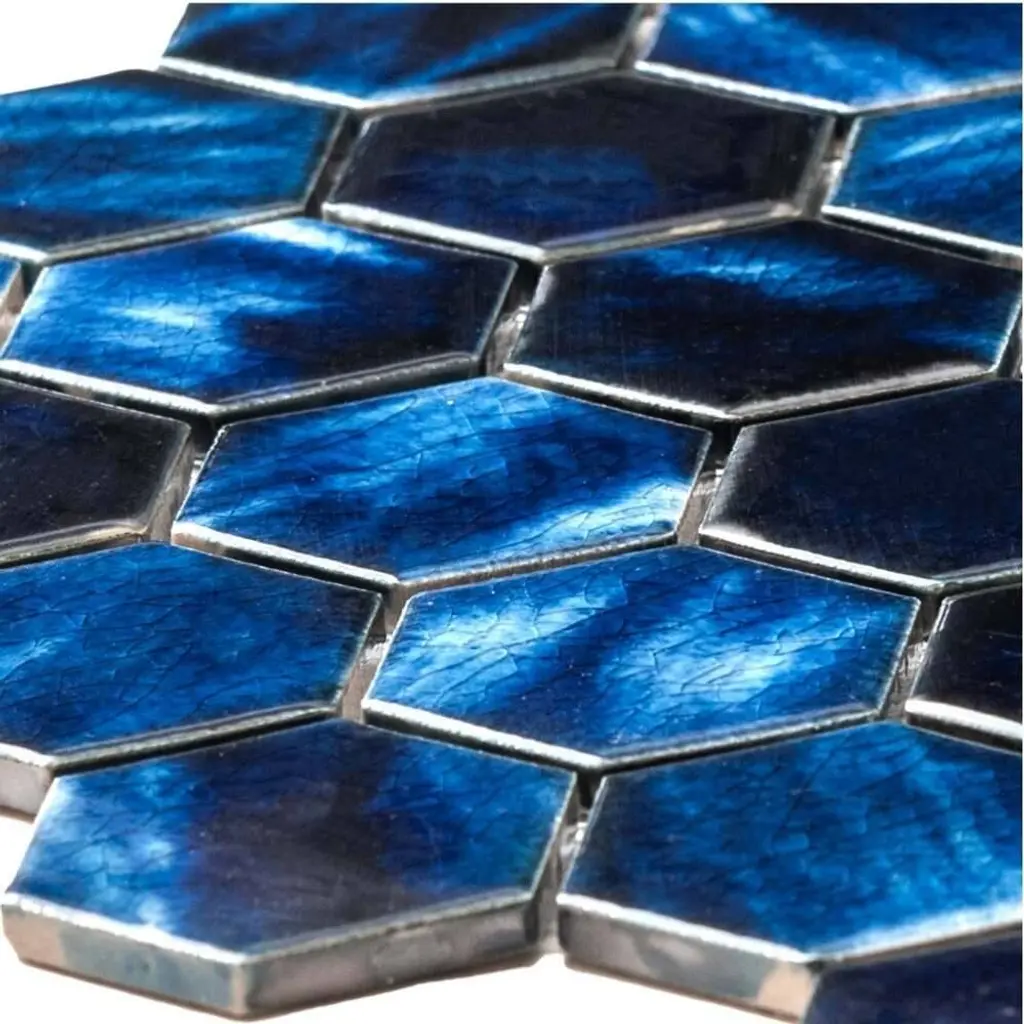 Experience a symphony of sophistication with our Agate Collection, boasting a reflective glossy finish that adds a touch of luxury to any space. Crafted with an artisanal touch, the Agate tiles offer a bold yet refined aesthetic. Each tile is a masterpiece with vibrant, crackled colorways arranged in a mesmerizing hexagon format accentuated with unique metal tones. With its distinctive metallic crackle and watercolored color variation, Agate distinguishes itself from the traditional hexagon mosaic, making it the perfect installation for any bathroom or kitchen space.