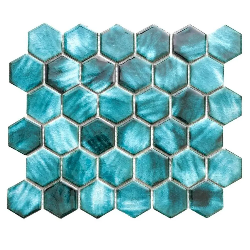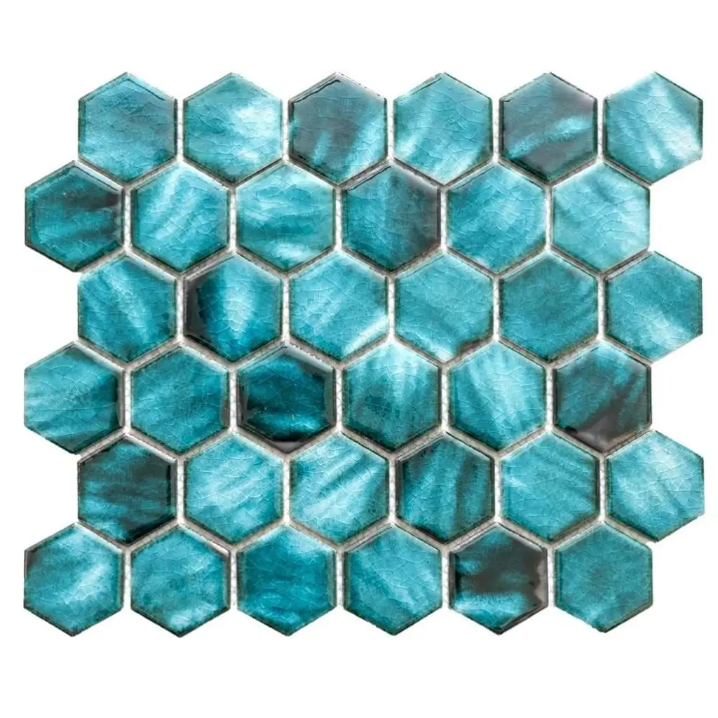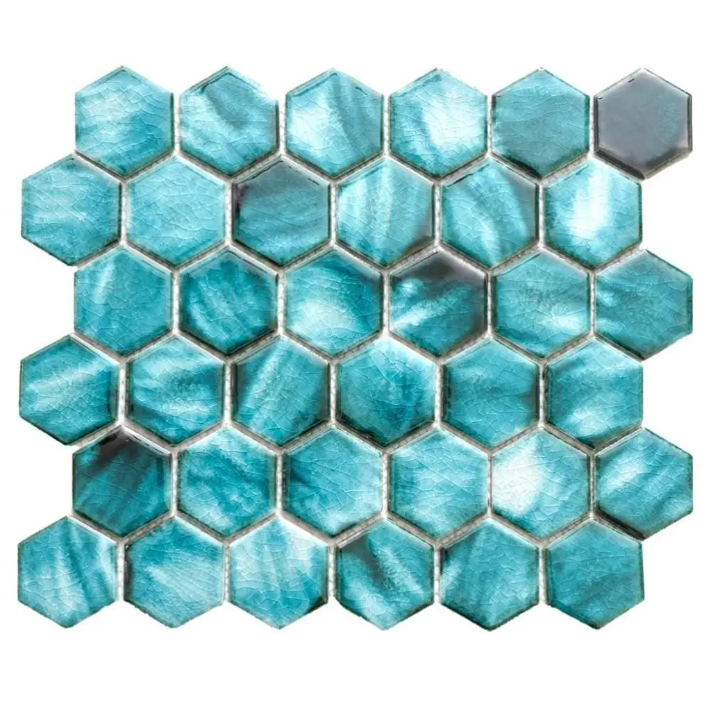 Experience a symphony of sophistication with our Agate Collection, boasting a reflective glossy finish that adds a touch of luxury to any space. Crafted with an artisanal touch, the Agate tiles offer a bold yet refined aesthetic. Each tile is a masterpiece with vibrant, crackled colorways arranged in a mesmerizing hexagon format accentuated with unique metal tones. With its distinctive metallic crackle and watercolored color variation, Agate distinguishes itself from the traditional hexagon mosaic, making it the perfect installation for any bathroom or kitchen space.