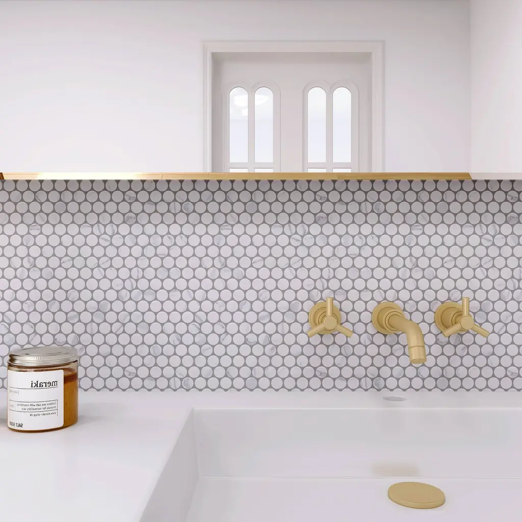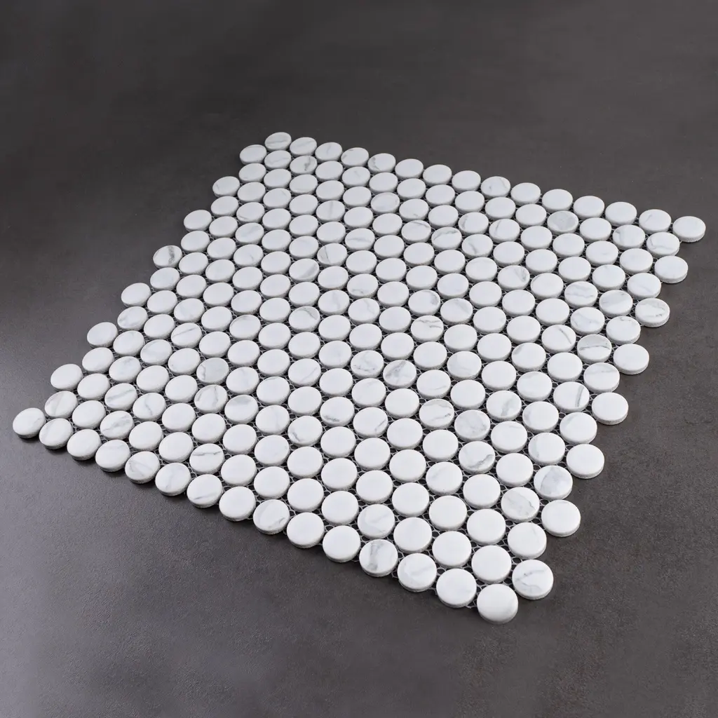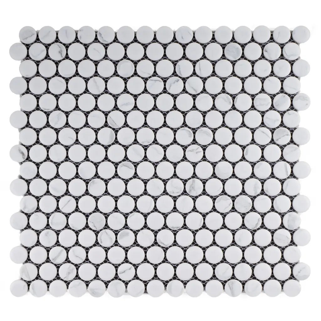 Tile Generation 0.8" x 0.8" Porcelain Penny Round Marble Look Mosaic Wall & Floor Tile features satin marble look design. High-quality Porcelain transforms your home into a magnificent space. The classic design creates beautiful layouts and designs when mixed and matched with other colors. It also features Low-maintenance and easy clean will make your life so much easier. This premium tile is an ideal and elegant look to your living room, kitchen and bathroom.Details