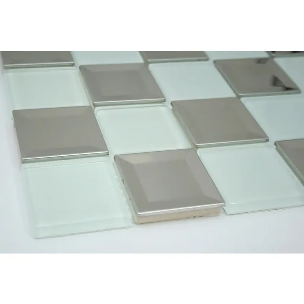 Tilegen. 2" X 2" Metal Mix Glass Mosaic Tile In Clear Silver Wall Tile (10 Sheets/9.6sqft.) - Sample