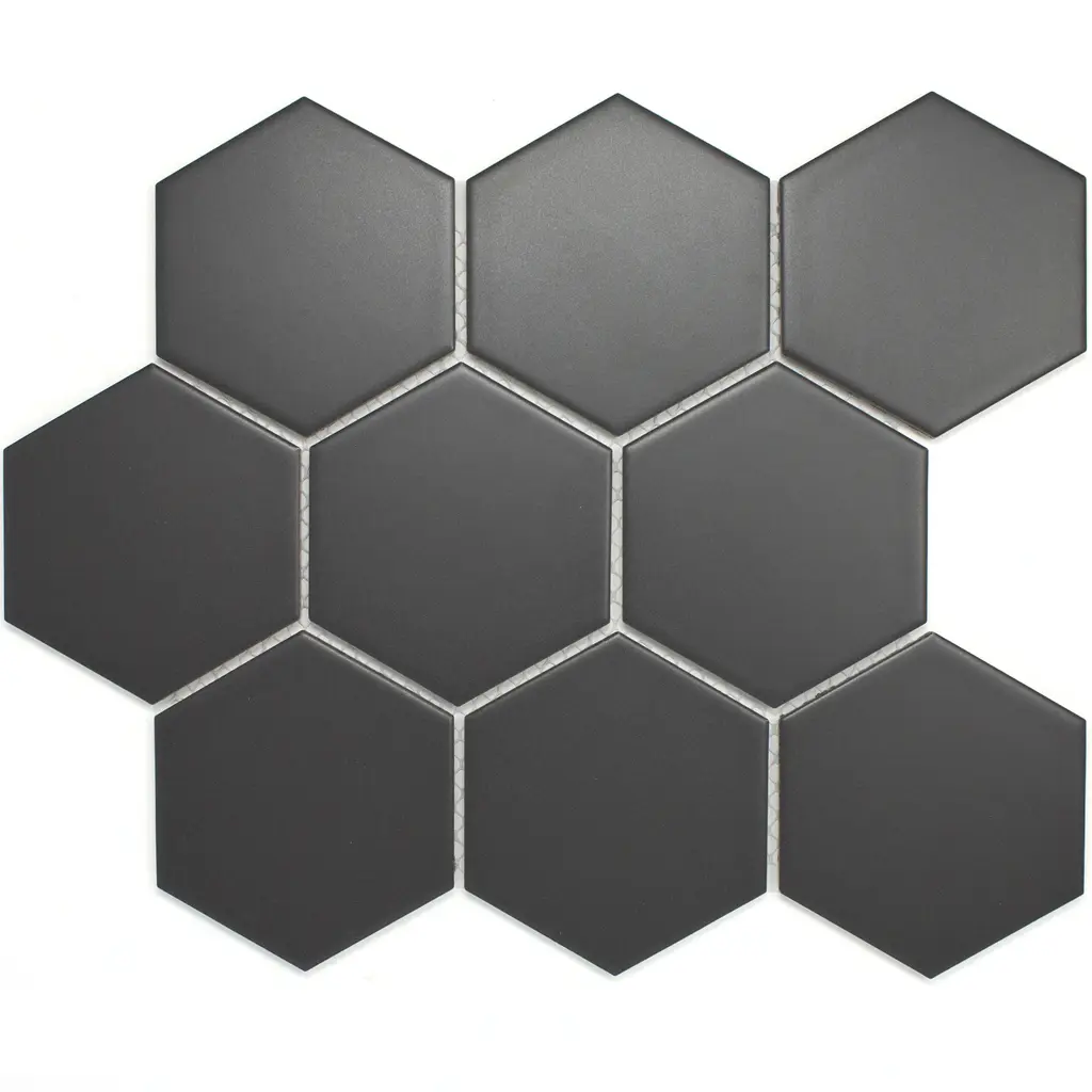 Tilegen. 3.75" X 3.75" Hexagon Porcelain Tile In Dark Grey Floor And Wall Tile (11 Sheets/8.2sqft.) - Sample