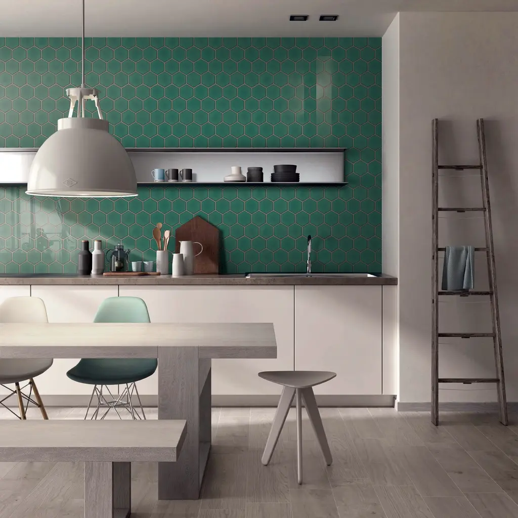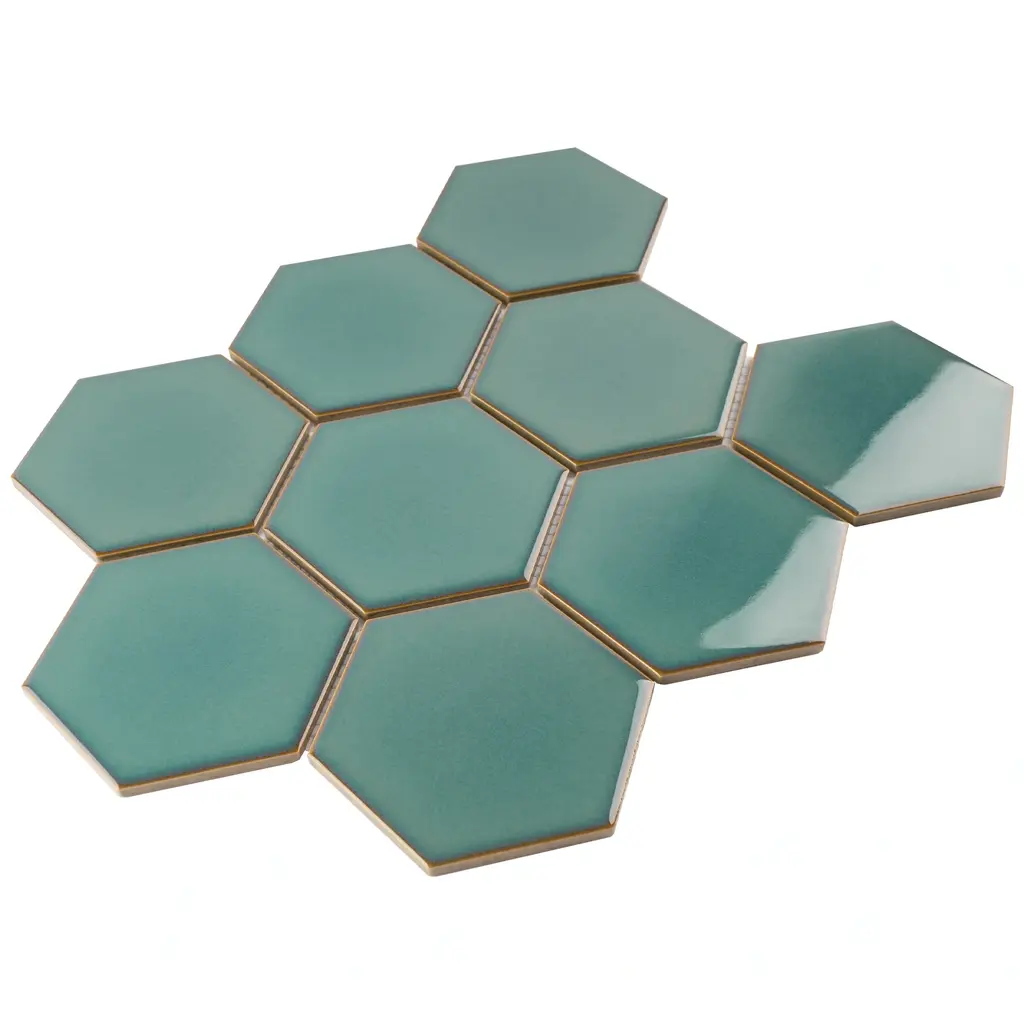 Tilegen. 4" X 4" Hexgon Crystal Porcelain Mosaic In Green Wall Tile (11 Sheets/9.02sqft.) - Sample