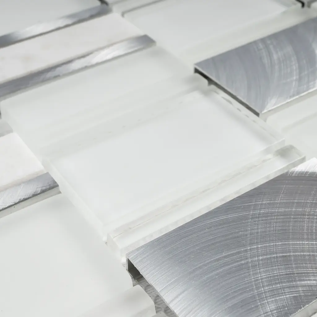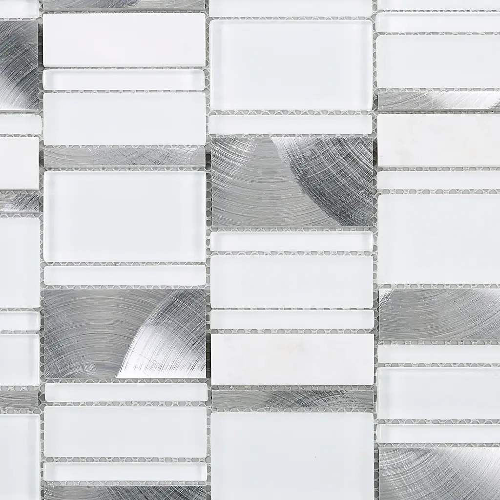 Tile Generation Brickmax Random Sized Mixed Material Tile in White/Silver Wall Tile features semi-gloss metal look;stone look brick design. High-quality glass, marble and aluminum transforms your home into a magnificent space. The random brick creates beautiful layouts and designs when mixed and matched with other colors. It also features Low-maintenance and easy clean will make your life so much easier. This premium tile is an ideal and elegant look to your living room, kitchen and bathroom. Details The images have already display the most accurate color. However, color variation may still accurate due to the difference in computer monitor screen. All order will be shipped within 1-2 business days except large quantity order which is over 300 lbs will ship via freight carrier which might expect longer shipping time frame. Each item within an order will be selected from the same lot number which has no color or size variation, but multiple orders may cause receiving multiple lots of products. Please ensure that all tiles for a project is ordered within one order. If any reorder please email us by providing original order number to ensure receiving the same lot of product.