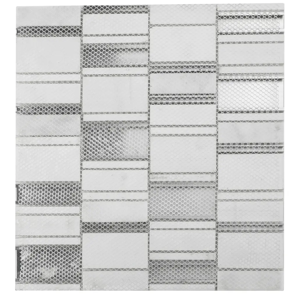 Tilegen. Brickmax Random Sized Mixed Material Tile In White/silver Wall Tile (10 Sheets/10.3sqft.) - Sample