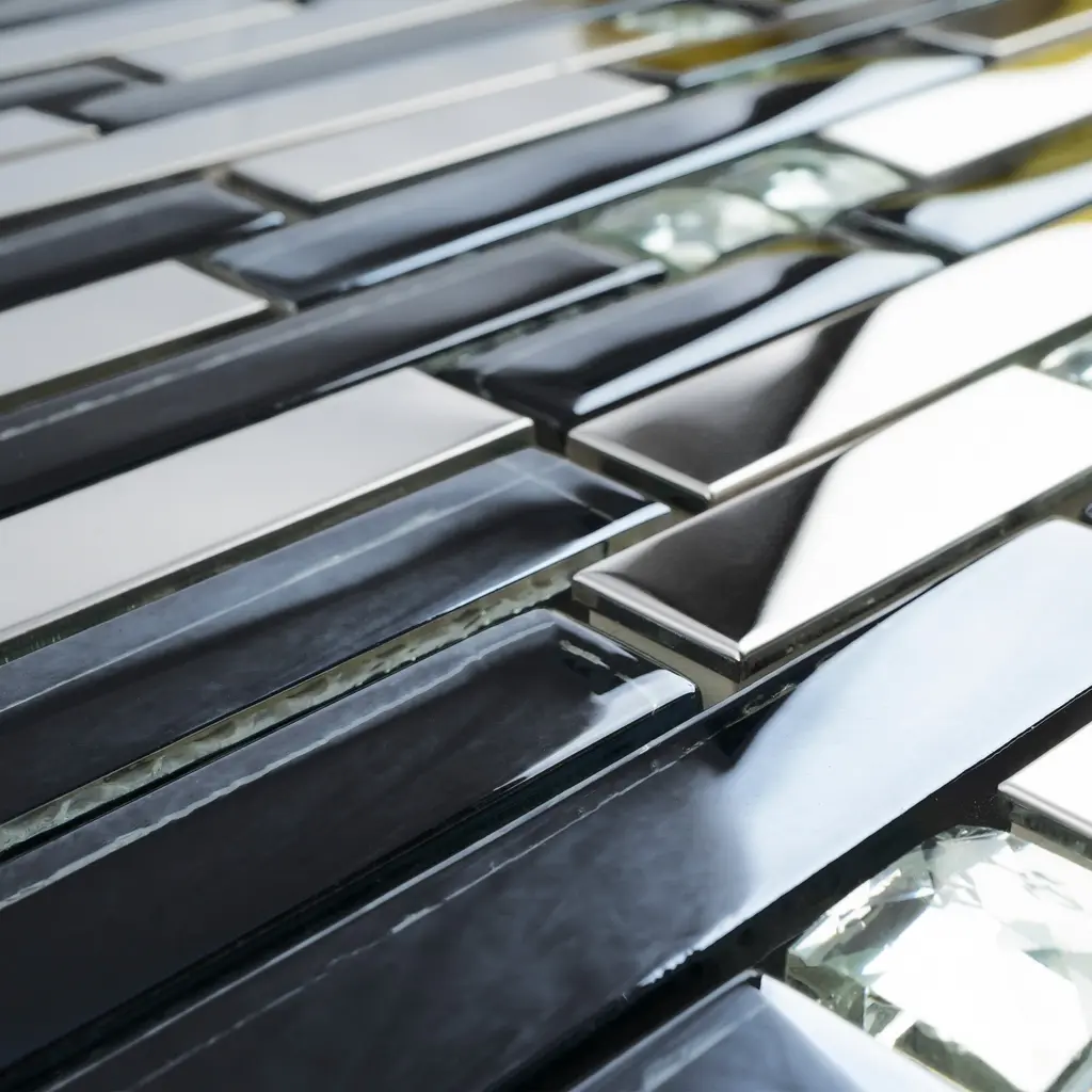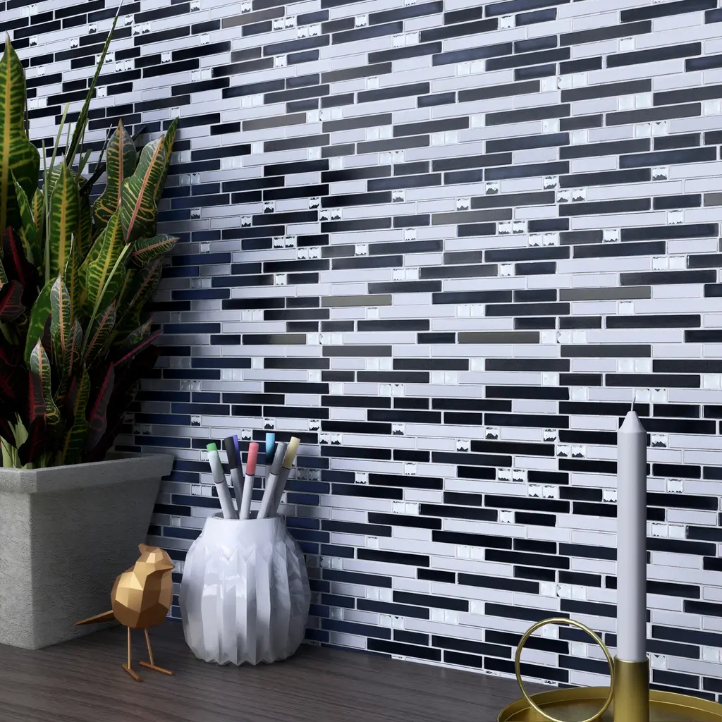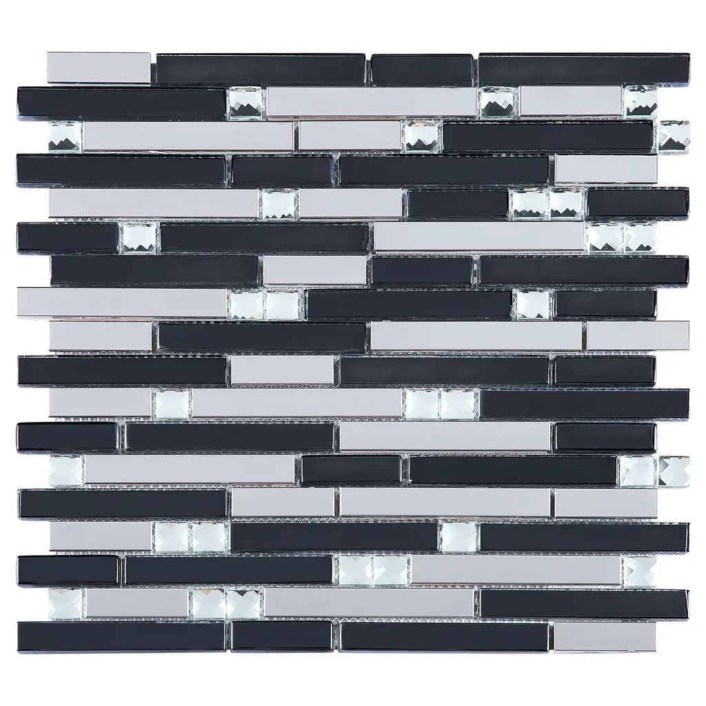 Tile Generation Crystal Diamond Random Sized Metal and Glass Mosaic Tile in Black/Silver Wall Tile features glossy patterned linear design. High-quality glass and stainless steel transform your home into a magnificent space. The random linear create beautiful layouts and designs when mixed and matched with other colors. It also features Low-maintenance and easy clean will make your life so much easier. This premium tile is an ideal and elegant look to your living room, kitchen, and bathroom.DetailsThe images have already display the most accurate color. However, color variation may still accurate due to the difference in computer monitor screen.All order will be shipped within 1-2 business days except large quantity order which is over 300 lbs will ship via freight carrier which might expect longer shipping time frame.Each item within an order will be selected from the same lot number which has no color or size variation, but multiple orders may cause receiving multiple lots of products. Please ensure that all tiles for a project is ordered within one order. If any reorder please email us by providing original order number to ensure receiving the same lot of product.