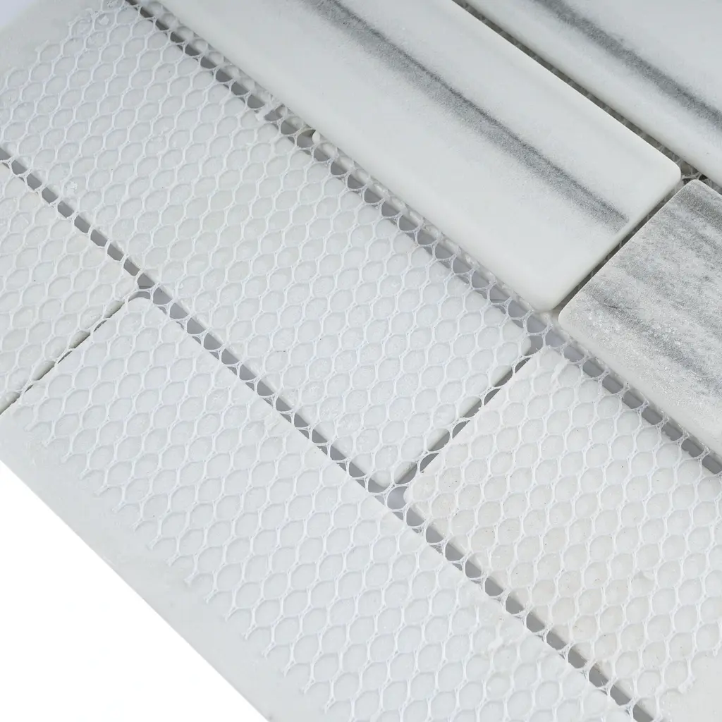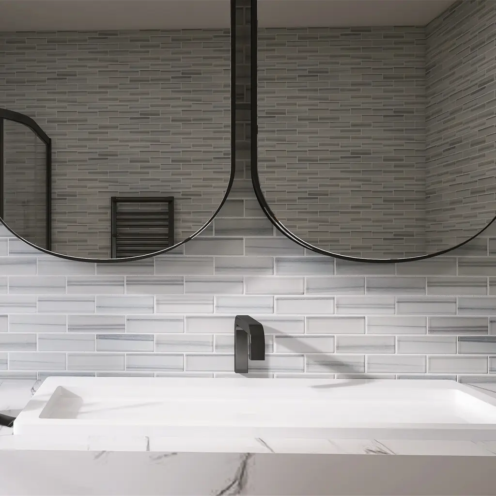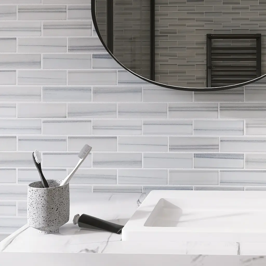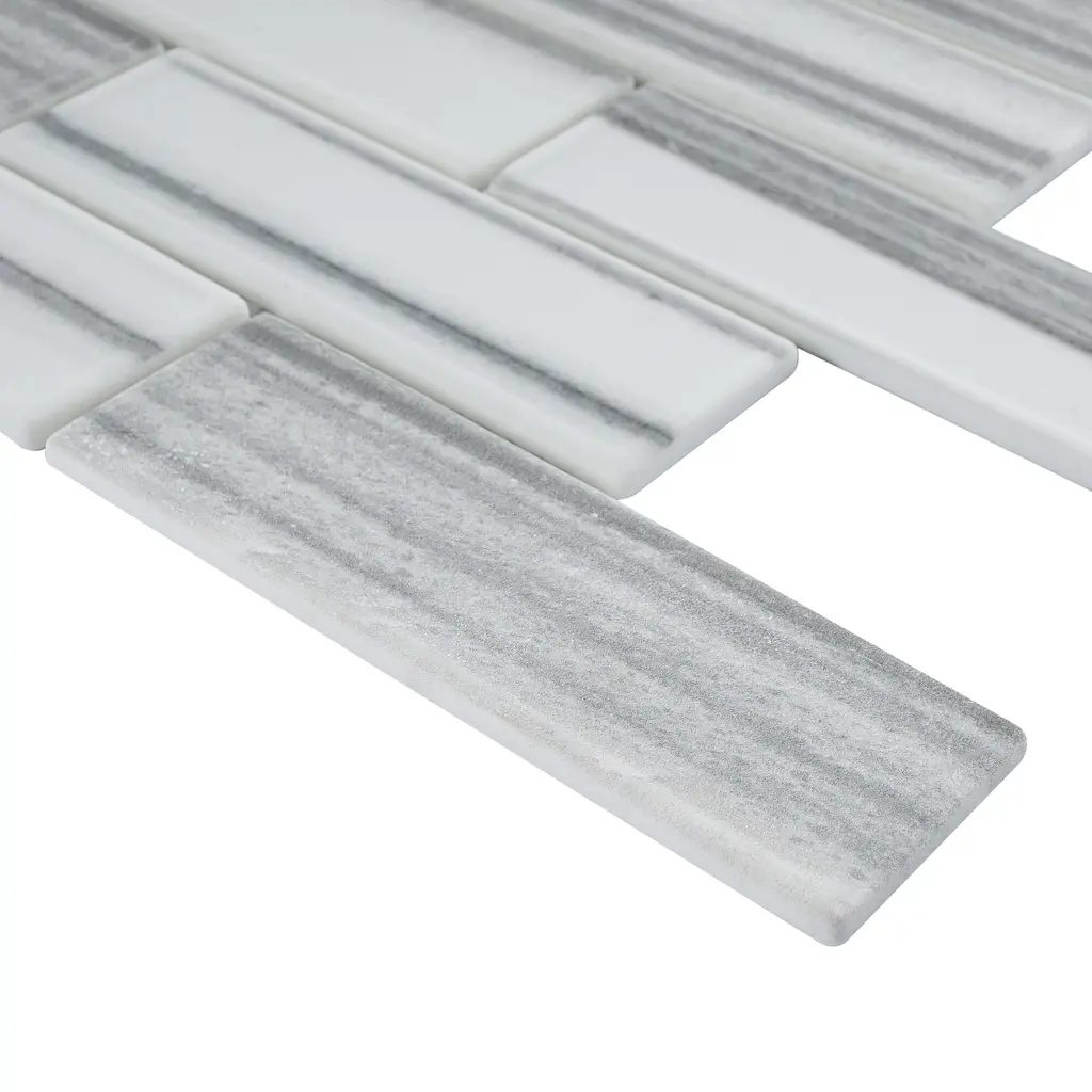 Tile Generation Equator Marble Look Glass Mosaic Wall Tile features matte art paint design. High-quality Glass transforms your home into a magnificent space. The brick design creates beautiful layouts and designs when mixed and matched with other colors. It also features Low-maintenance and easy clean will make your life so much easier. This premium tile is an ideal and elegant look to your living room, kitchen and bathroom.Details