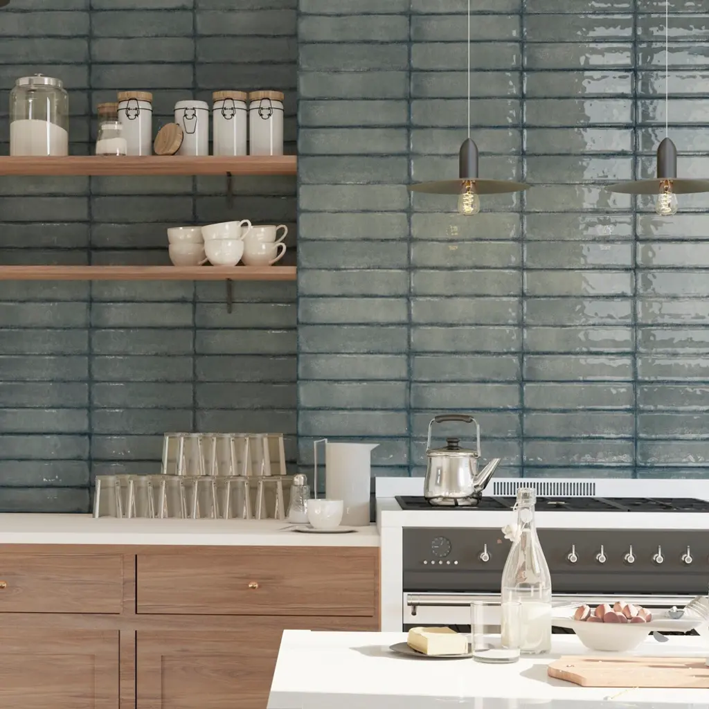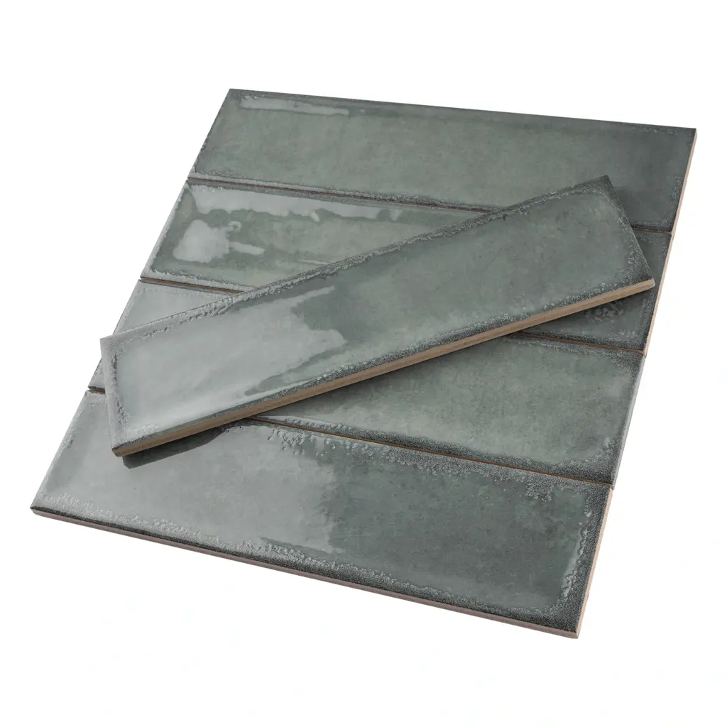 Tilegen. Iris 3" X 12" Ceramic In Aguamarina Green Wall Tile (25 Tiles/6.03 Sqft.) - Sample (3"x12")