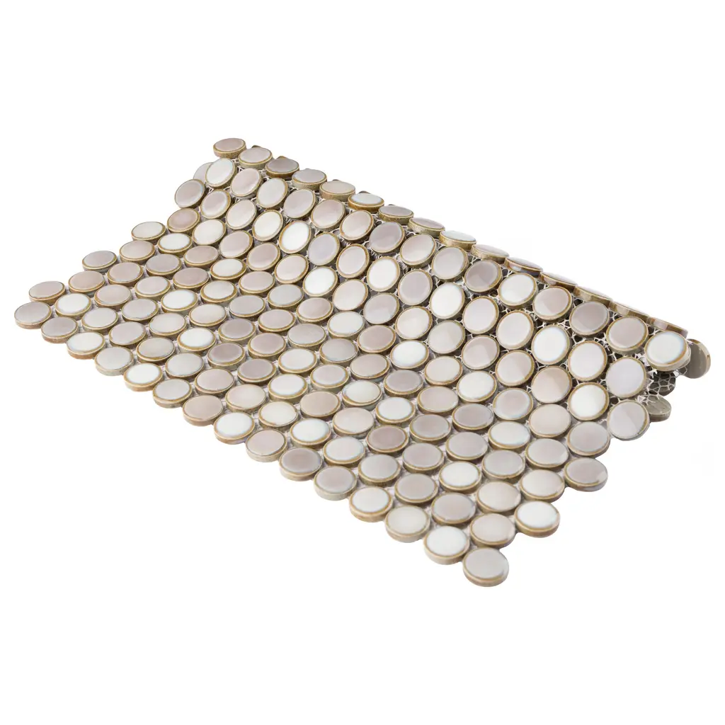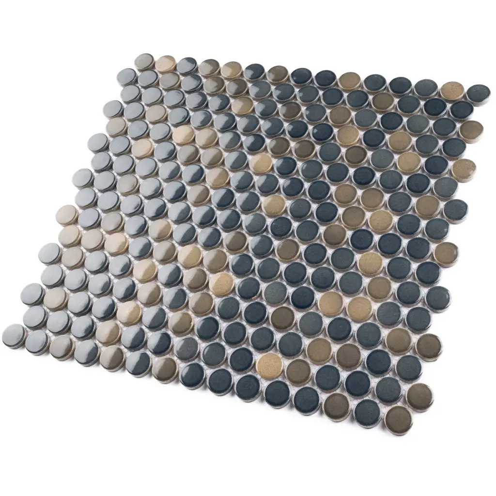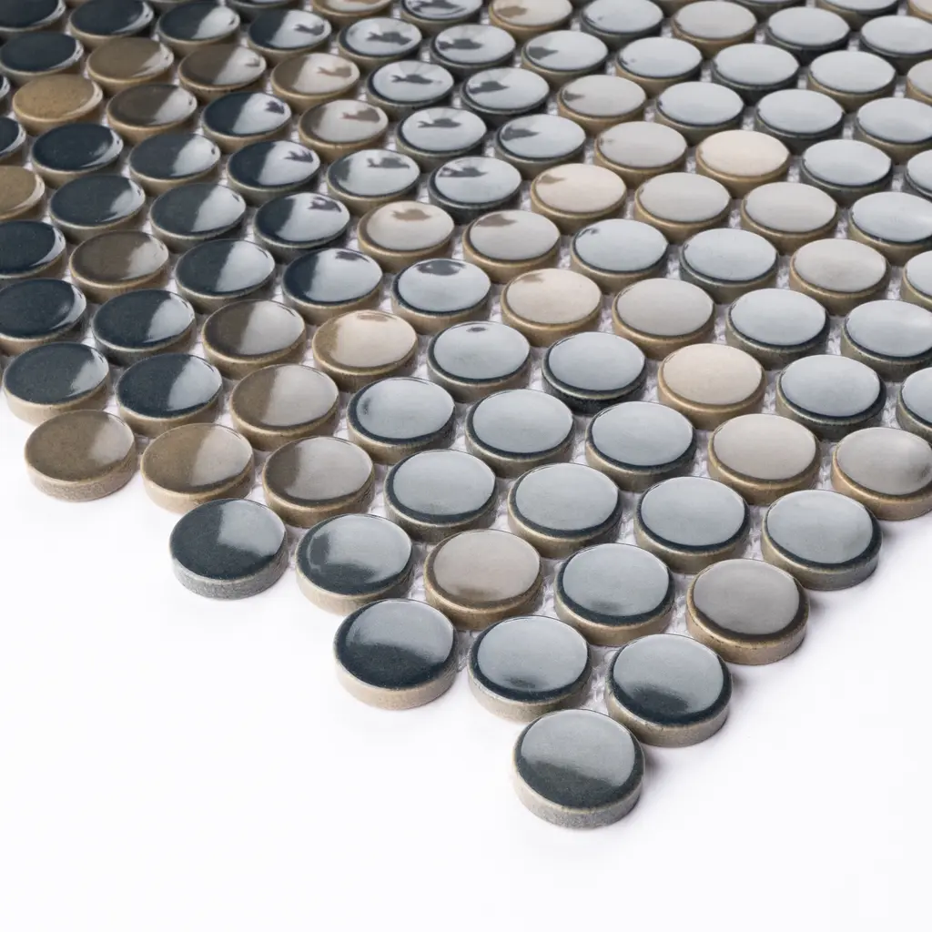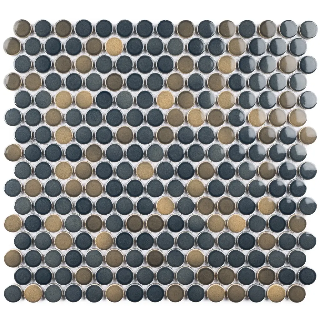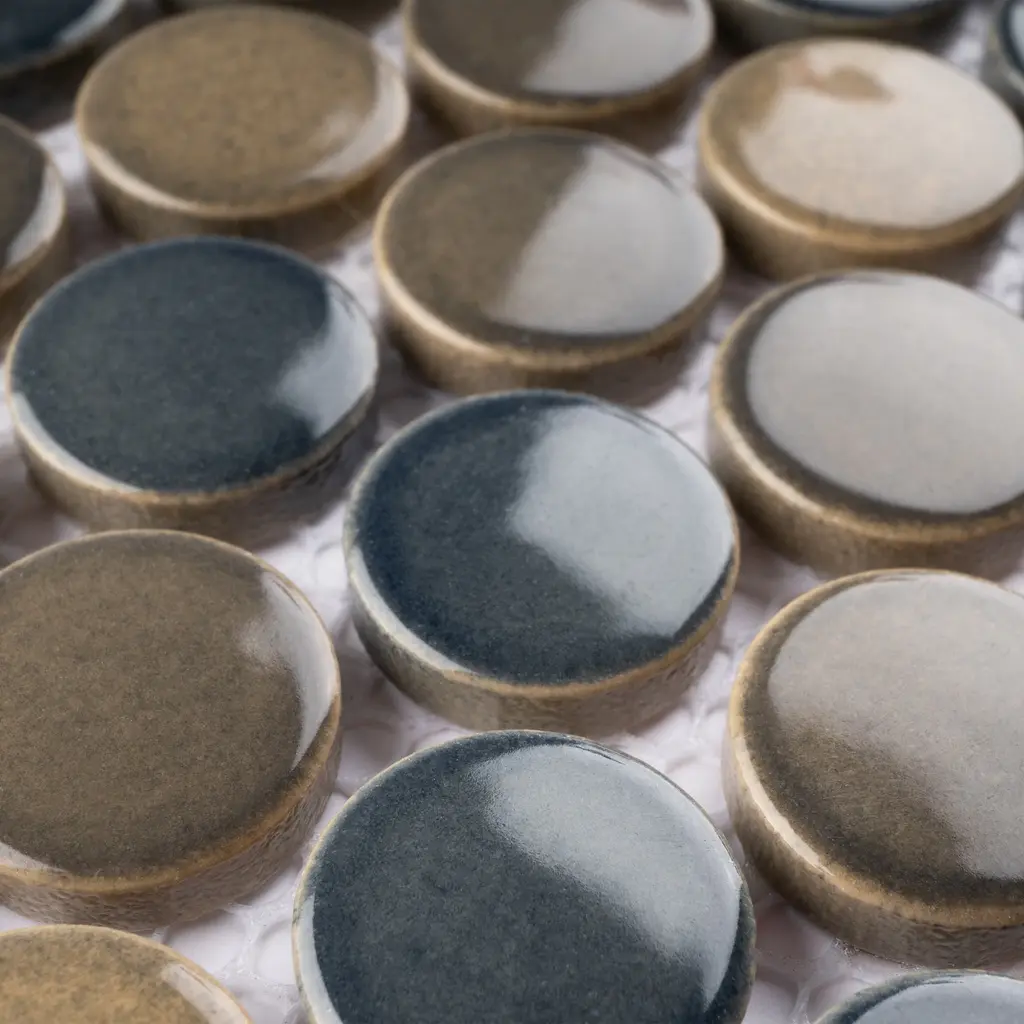 Tilegen. Mix Glazed 0.8" X 0.8" Porcelain Penny Round Mosaic Tile In Multi Blue Floor And Wall Tile (10 Sheets/9.8sqft.) - Sample