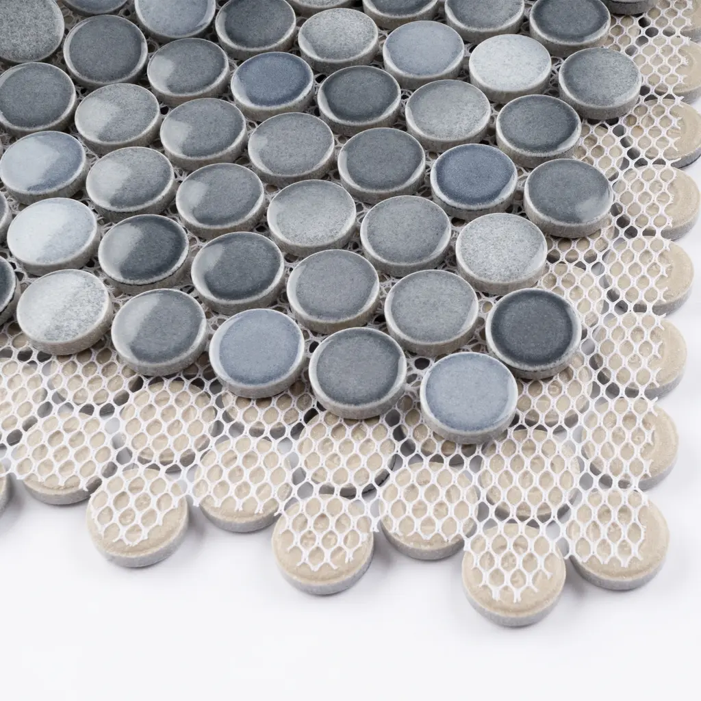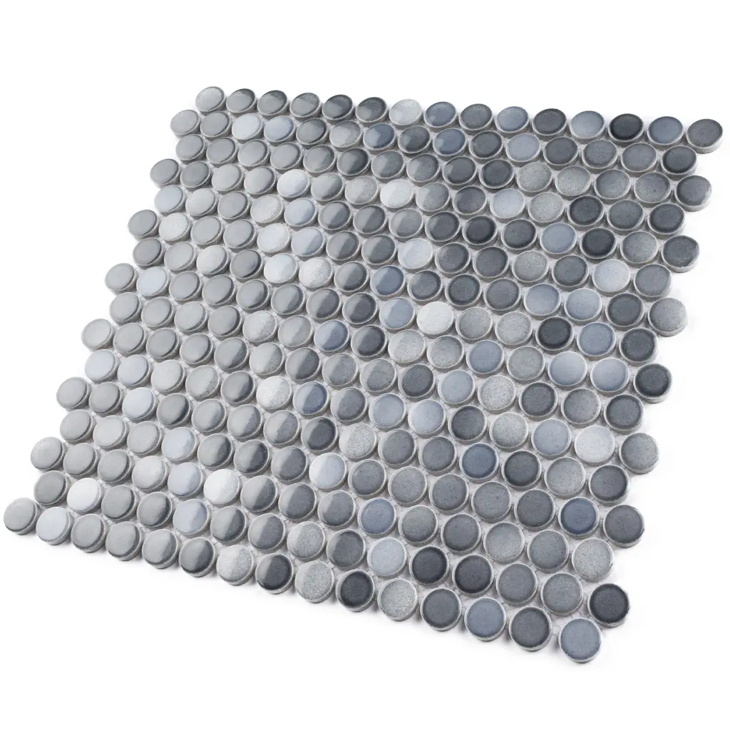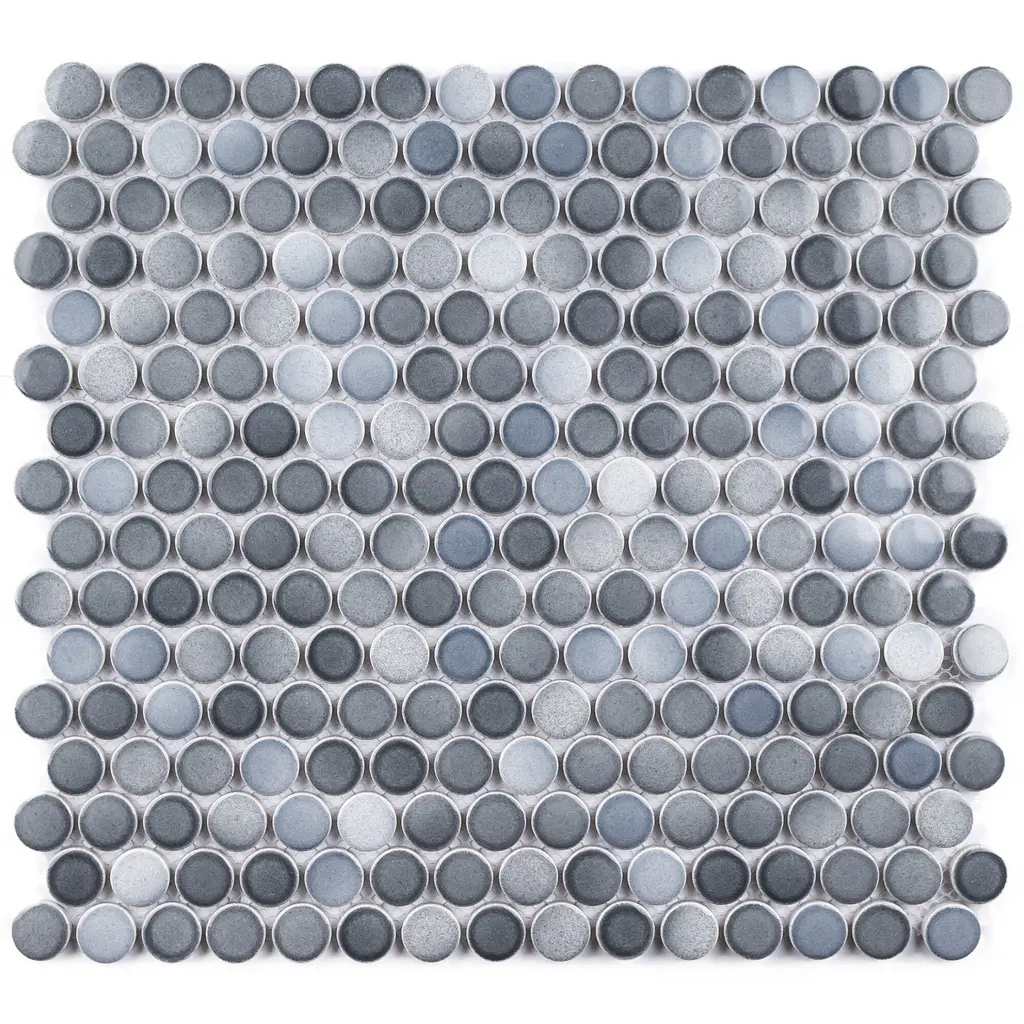 Tilegen. Mix Glazed 0.8" X 0.8" Porcelain Penny Round Mosaic Tile In Multi Gray Floor And Wall Tile (10 Sheets/9.8sqft.) - Sample