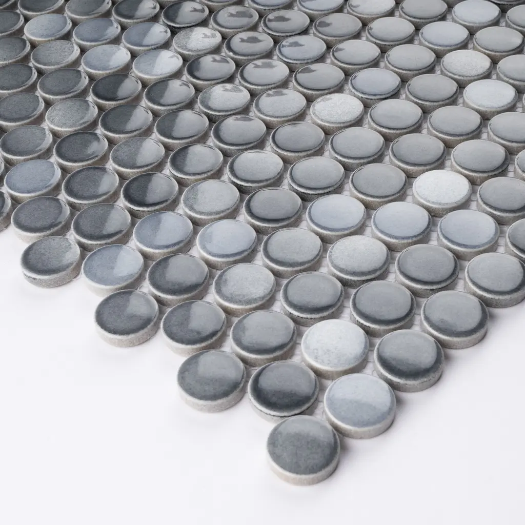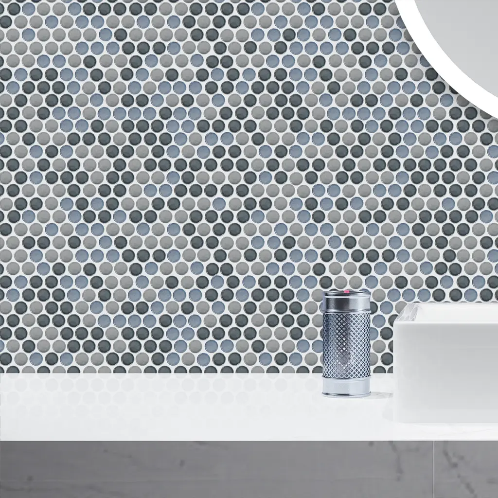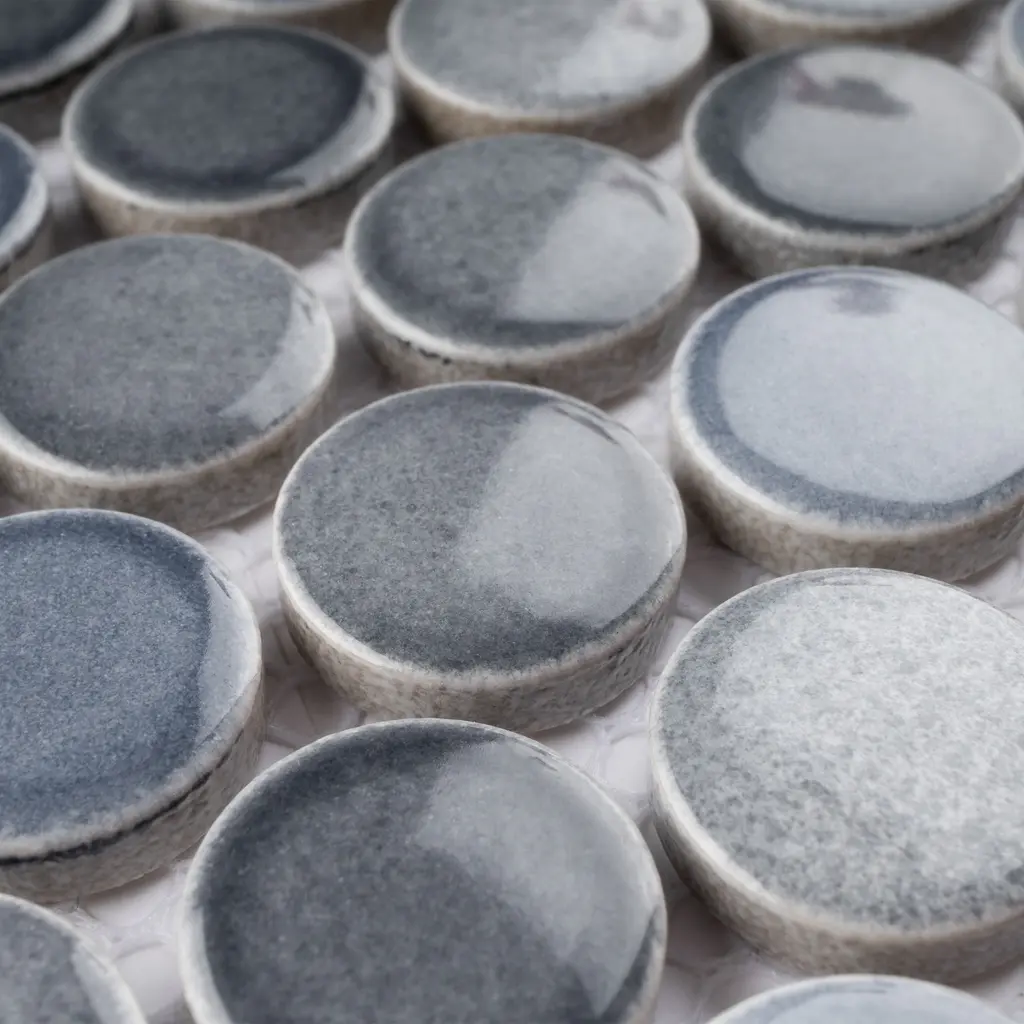 Tilegen. Mix Glazed 0.8" X 0.8" Porcelain Penny Round Mosaic Tile In Multi Gray Floor And Wall Tile (10 Sheets/9.8sqft.) - Sample