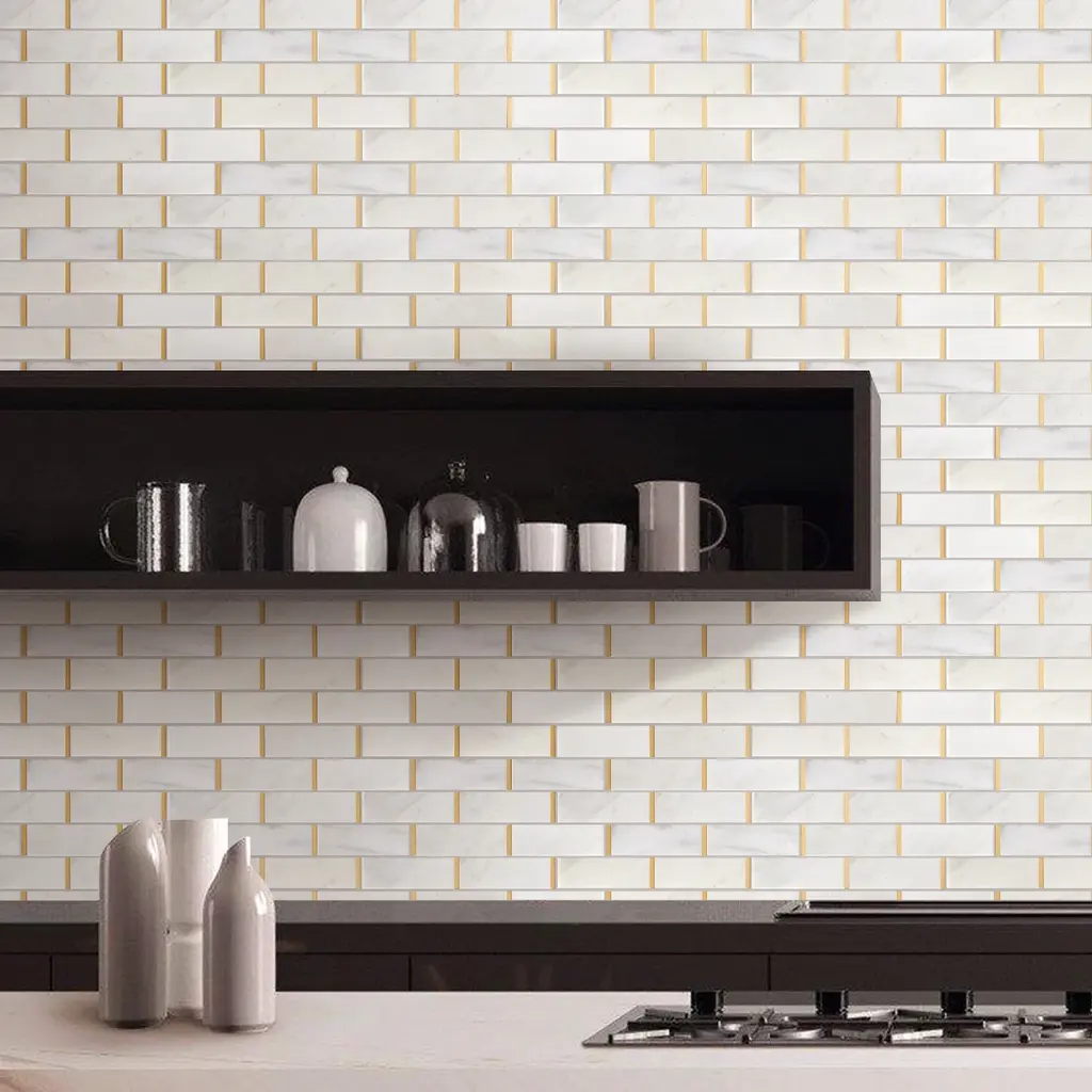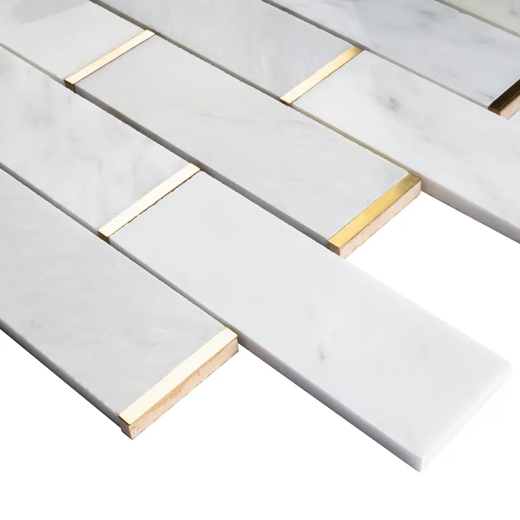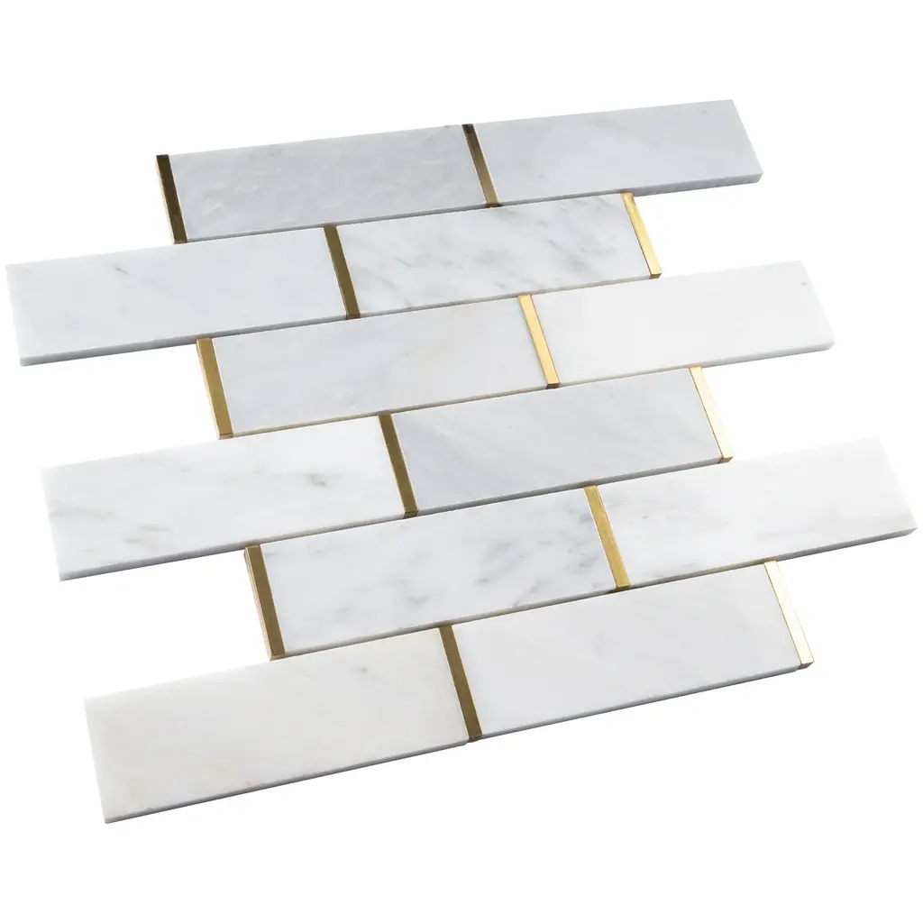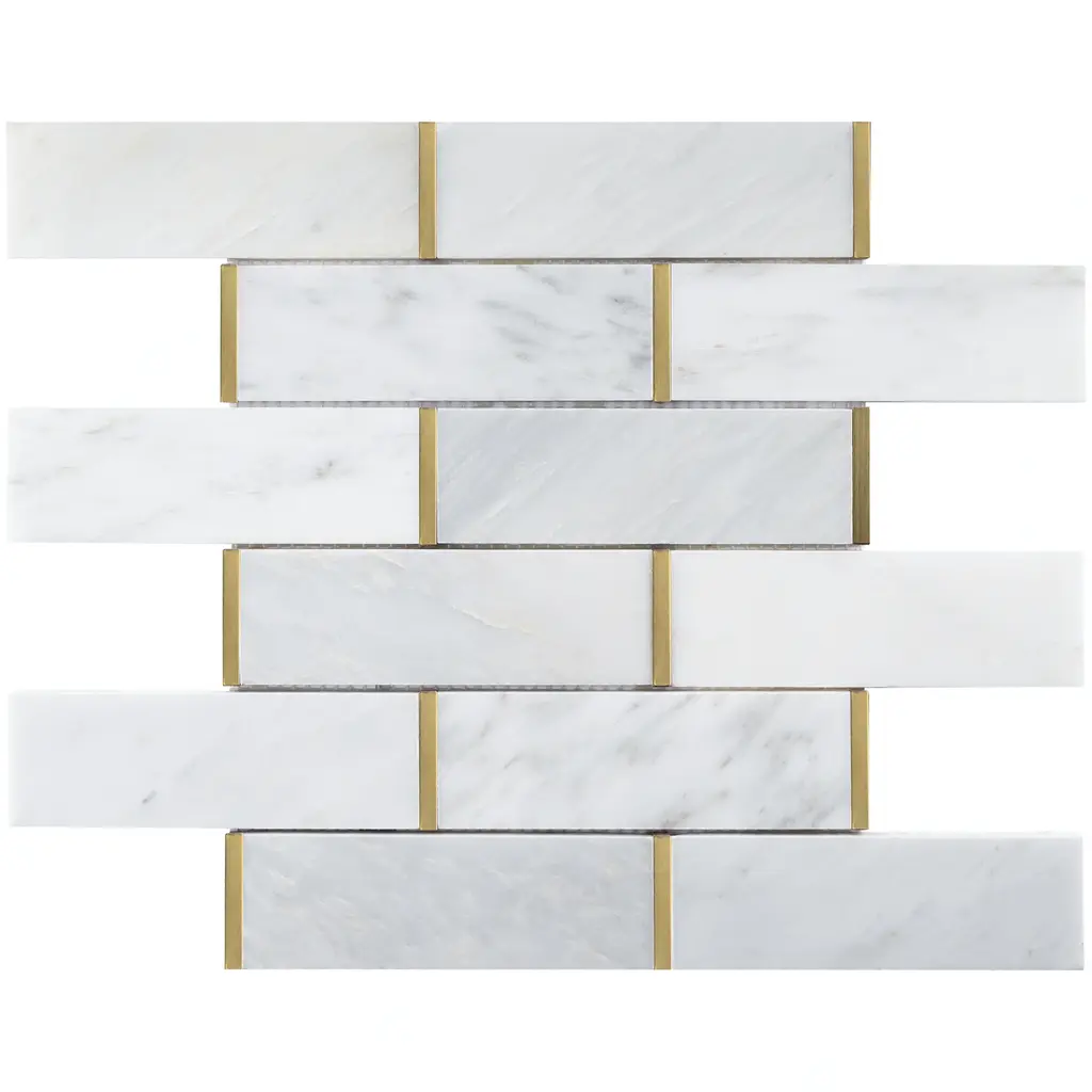 Tilegen. Natural Bianco 2" X 6" Subway Metal And Marble Mosaic Tile In Gold/white Wall Tile (10 Sheets/9.7sqft.) - Sample