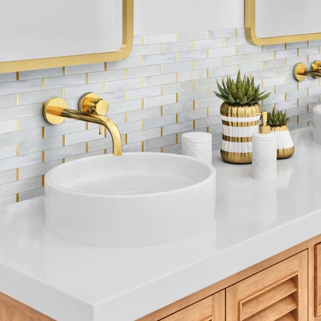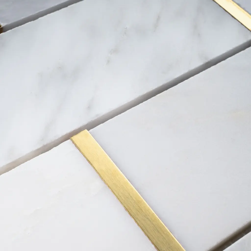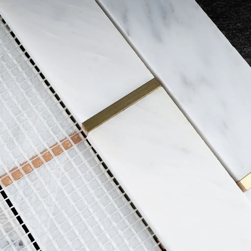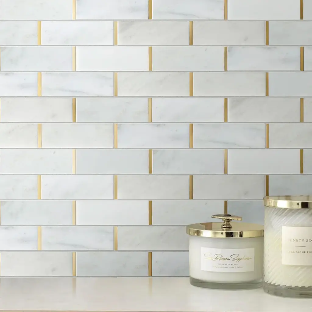 Tilegen. Natural Bianco 2" X 6" Subway Metal And Marble Mosaic Tile In Gold/white Wall Tile (10 Sheets/9.7sqft.) - Sample