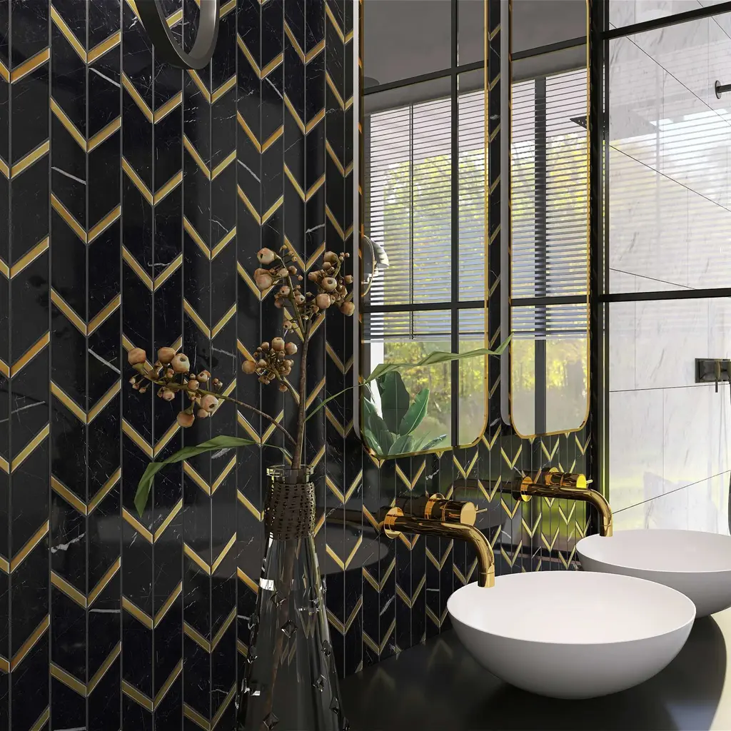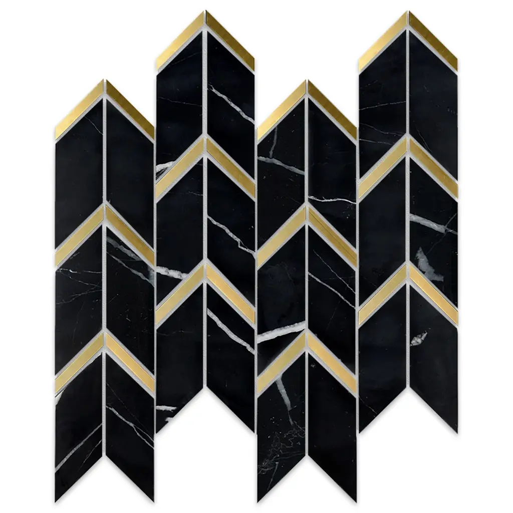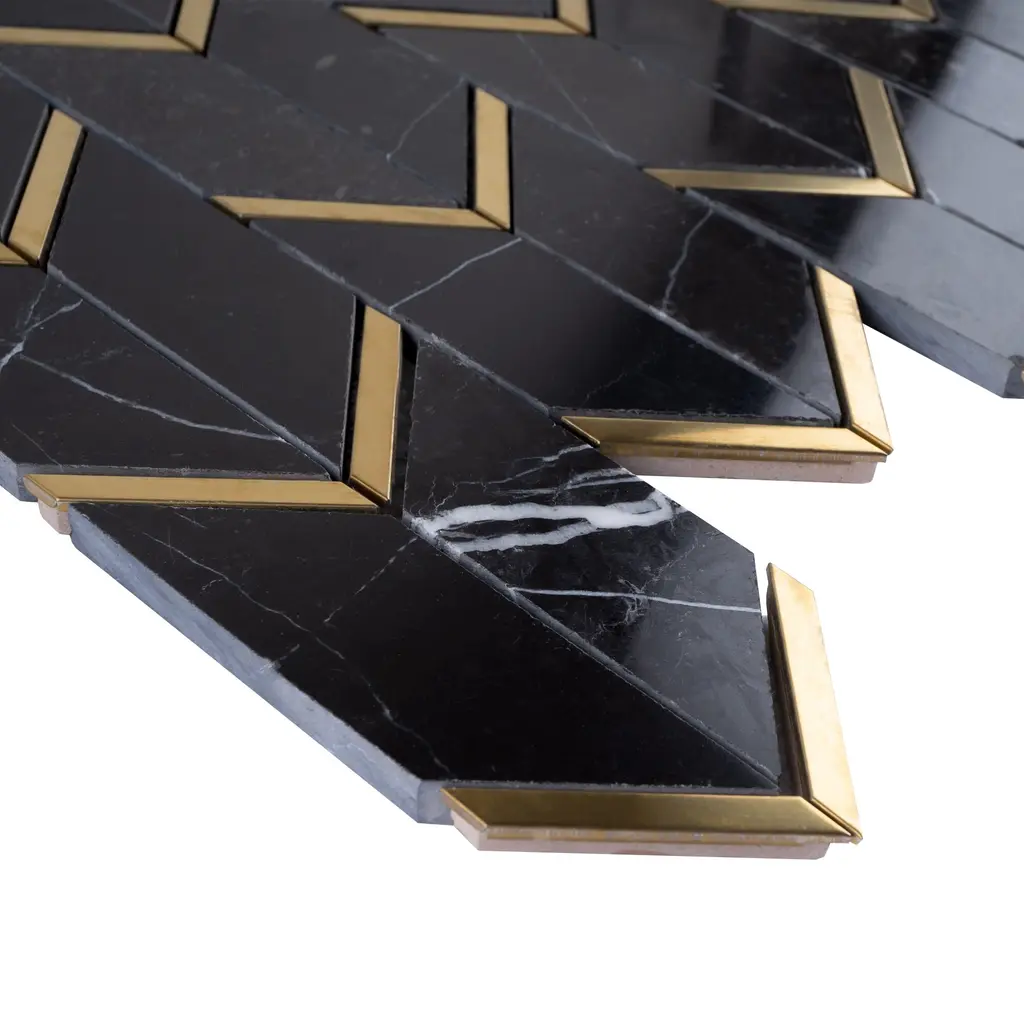 Tilegen. Natural Nero Marble Brick Joint Mosaic In Black/gold Wall Tile (10 Sheets/10.4 Sqft.) - Sample (4"x4")