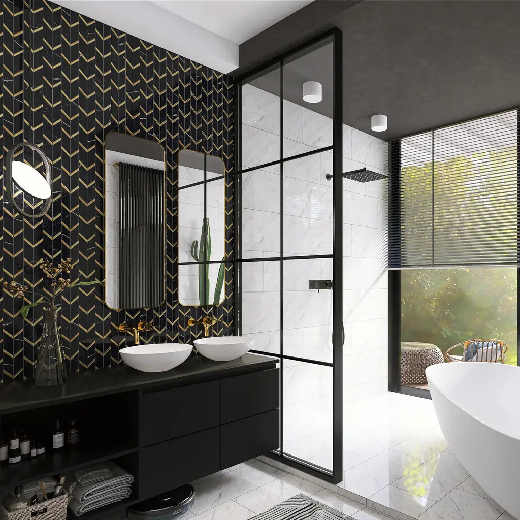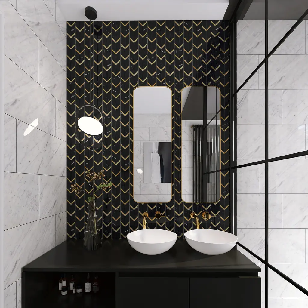 Tile Generation Natural Nero Marble Brick Joint Mosaic Wall Tile features polished marble look design. High-quality Marble transforms your home into a magnificent space. The classic design creates beautiful layouts and designs when mixed and matched with other colors. It also features Low-maintenance and easy clean will make your life so much easier. This premium tile is an ideal and elegant look to your living room, kitchen and bathroom.Details