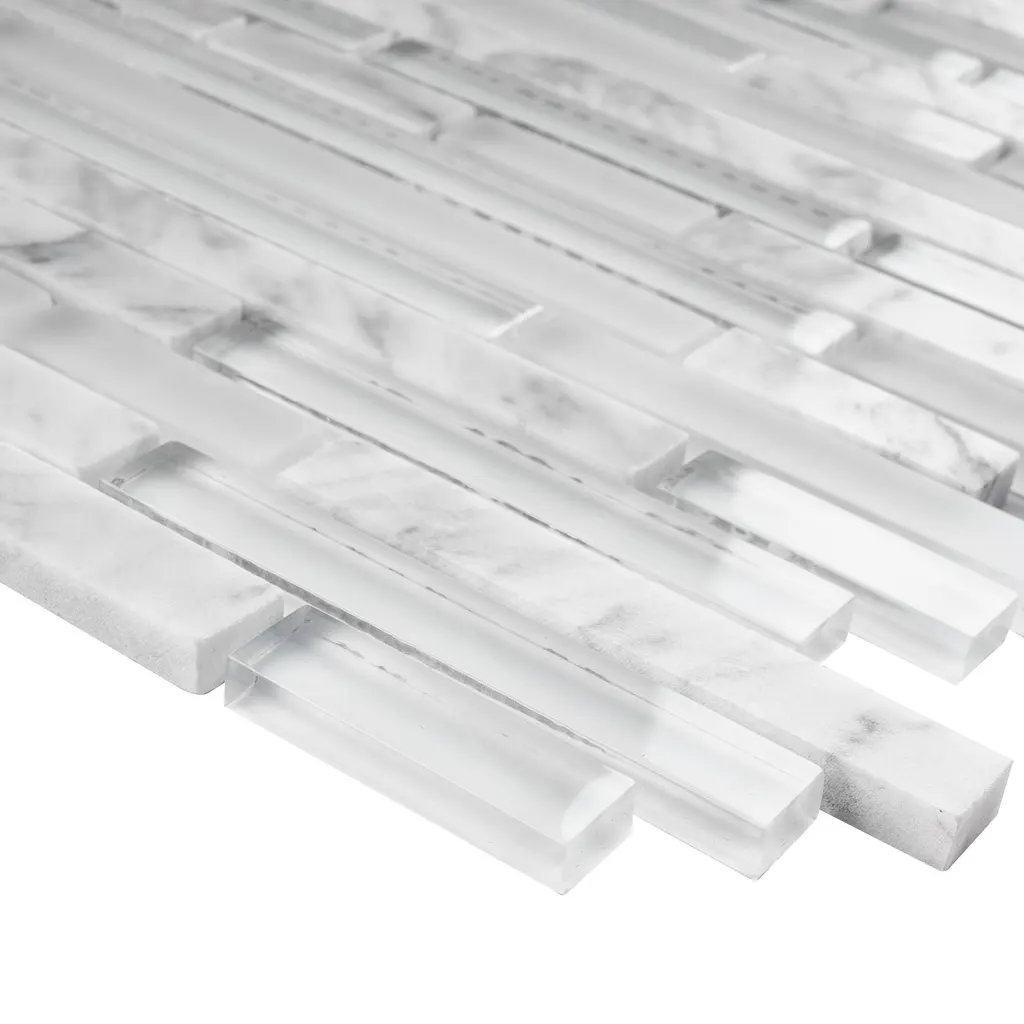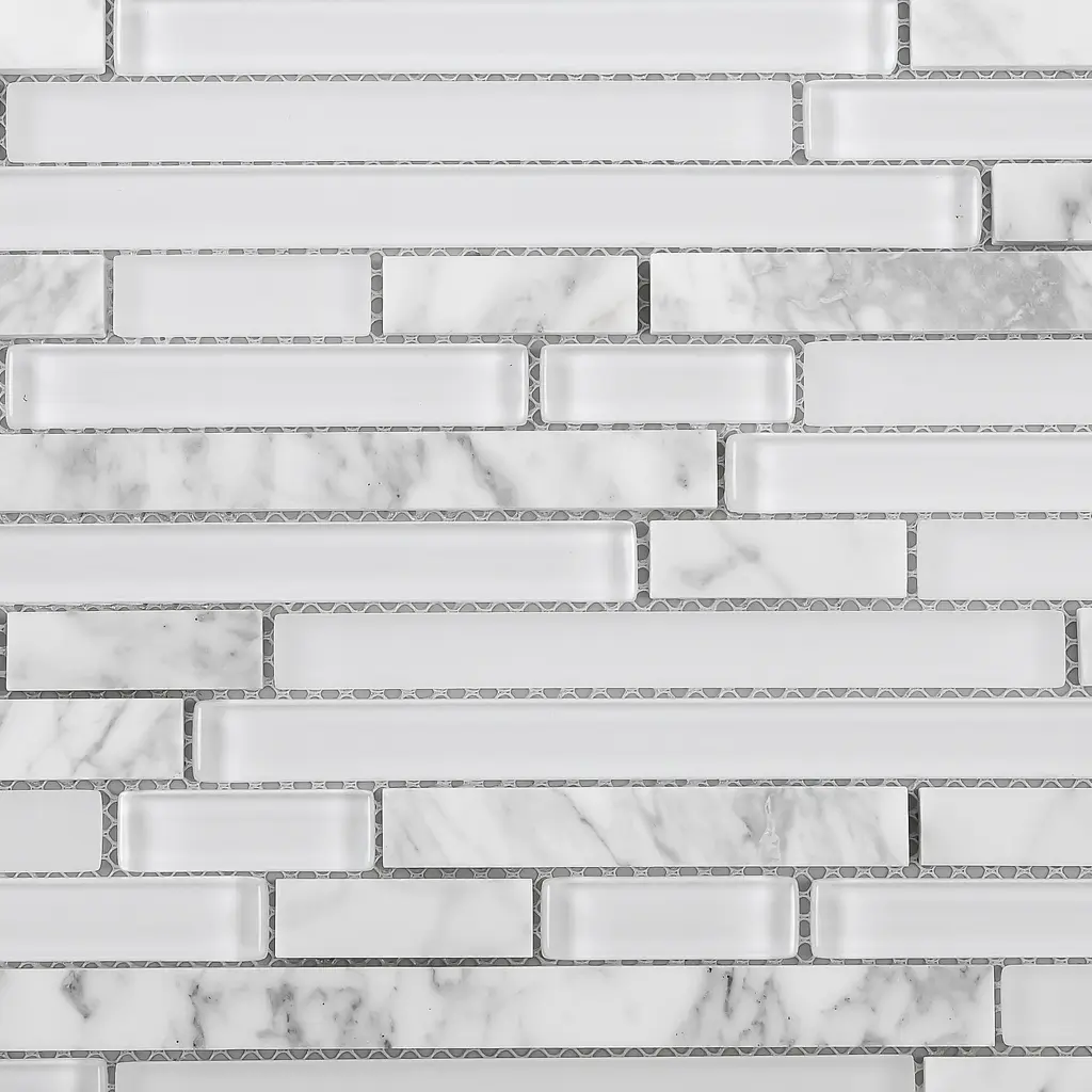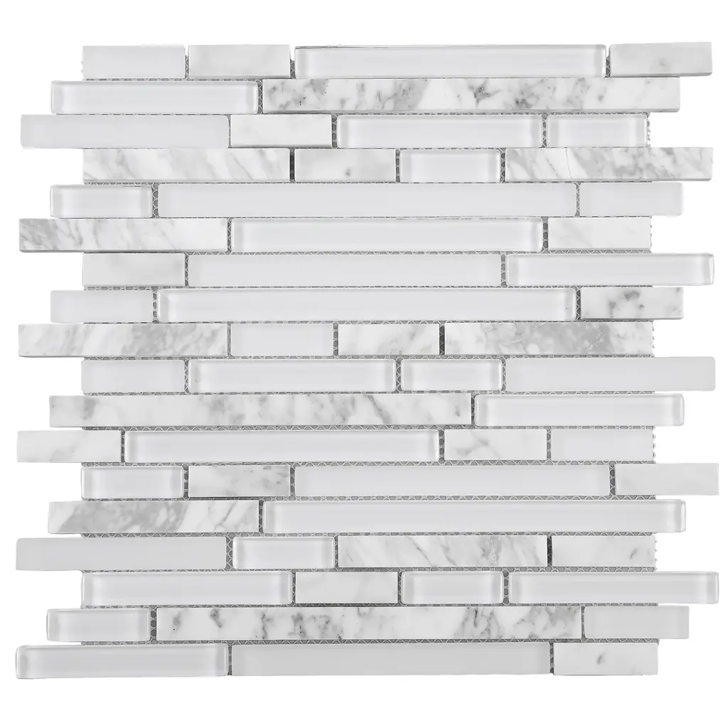 Elevate the look of your home with TileGen's Random Sized Brick Marble Mix Glass Mosaic Tile in White Wall Tile. This premium tile boasts a glossy linear design that adds elegance to any space. Its high-quality marble and glass materials produce a magnificent finish that will last for years to come. Its random linear pattern allows for beautiful layouts and designs when mixed and matched with other colors. Plus, it's low-maintenance and easy to clean, making your life easier. Perfect for your living room, kitchen, and bathroom.Features:Details:Please Note: