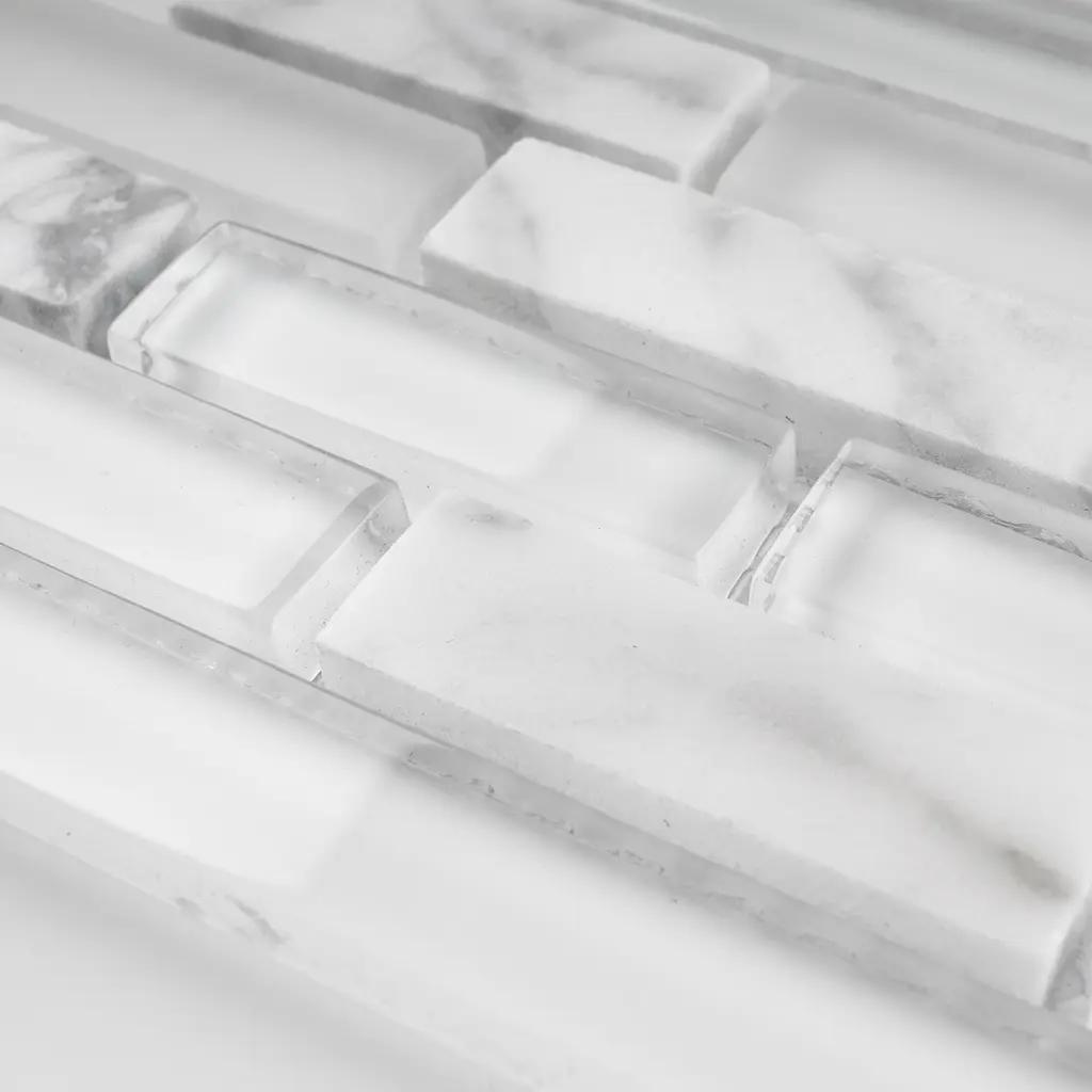 Tilegen. Random Sized Brick Marble Mix Glass Mosaic Tile In White Wall Tile (10 Sheets/9.6sqft.) - Sample