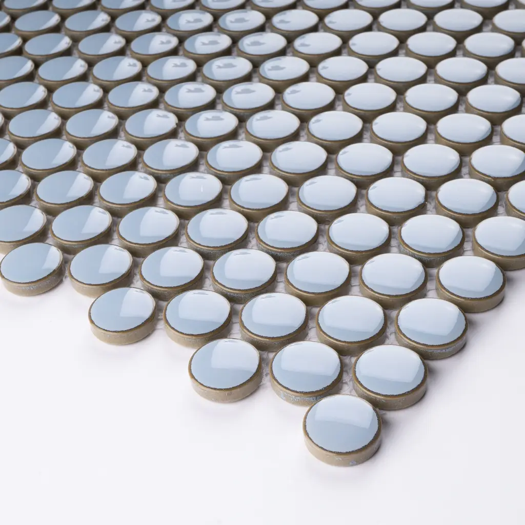 Tilegen. Reactive Glazed 0.8" X 0.8" Porcelain Penny Round Mosaic Tile In Blue Floor And Wall Tile (10 Sheets/9..8sqft.) - Sample