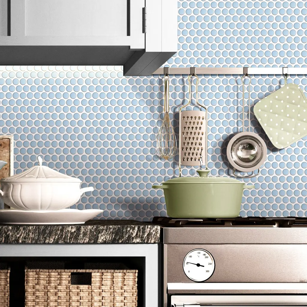 Tile Generation Reactive Glazed 0.8" x 0.8" Porcelain Penny Round Mosaic Tile in Blue Floor and Wall Tile features polished stone look brick design. High-quality porcelain transforms your home into a magnificent space. The rectangular brick creates beautiful layouts and designs when mixed and matched with other colors. It also features Low-maintenance and easy clean will make your life so much easier. This premium tile is an ideal and elegant look to your living room, kitchen and bathroom.Details