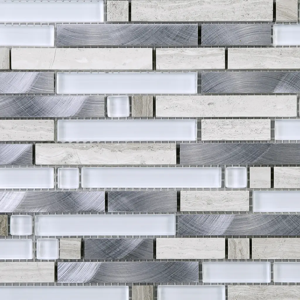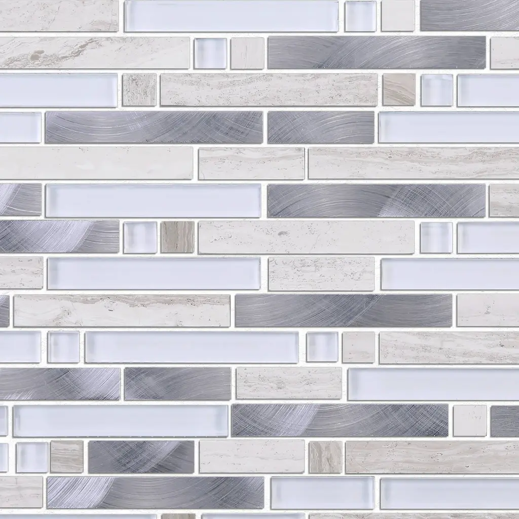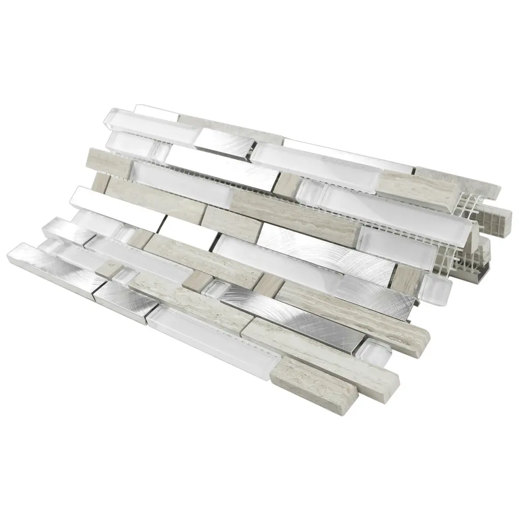 Tile Generation Series Thread Random Sized Mosaic Tile in Beige/White Wall Tile features glossy and matte metal look linear design. High-quality glass,marble and aluminum transforms your home into a magnificent space. The random linear creates beautiful layouts and designs when mixed and matched with other colors. It also features Low-maintenance and easy clean will make your life so much easier. This premium tile is an ideal and elegant look to your living room, kitchen and bathroom. Details The images have already display the most accurate color. However, color variation may still accurate due to the difference in computer monitor screen. All order will be shipped within 1-2 business days except large quantity order which is over 300 lbs will ship via freight carrier which might expect longer shipping time frame. Each item within an order will be selected from the same lot number which has no color or size variation, but multiple orders may cause receiving multiple lots of products. Please ensure that all tiles for a project is ordered within one order. If any reorder please email us by providing original order number to ensure receiving the same lot of product.