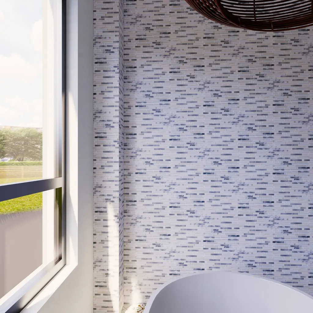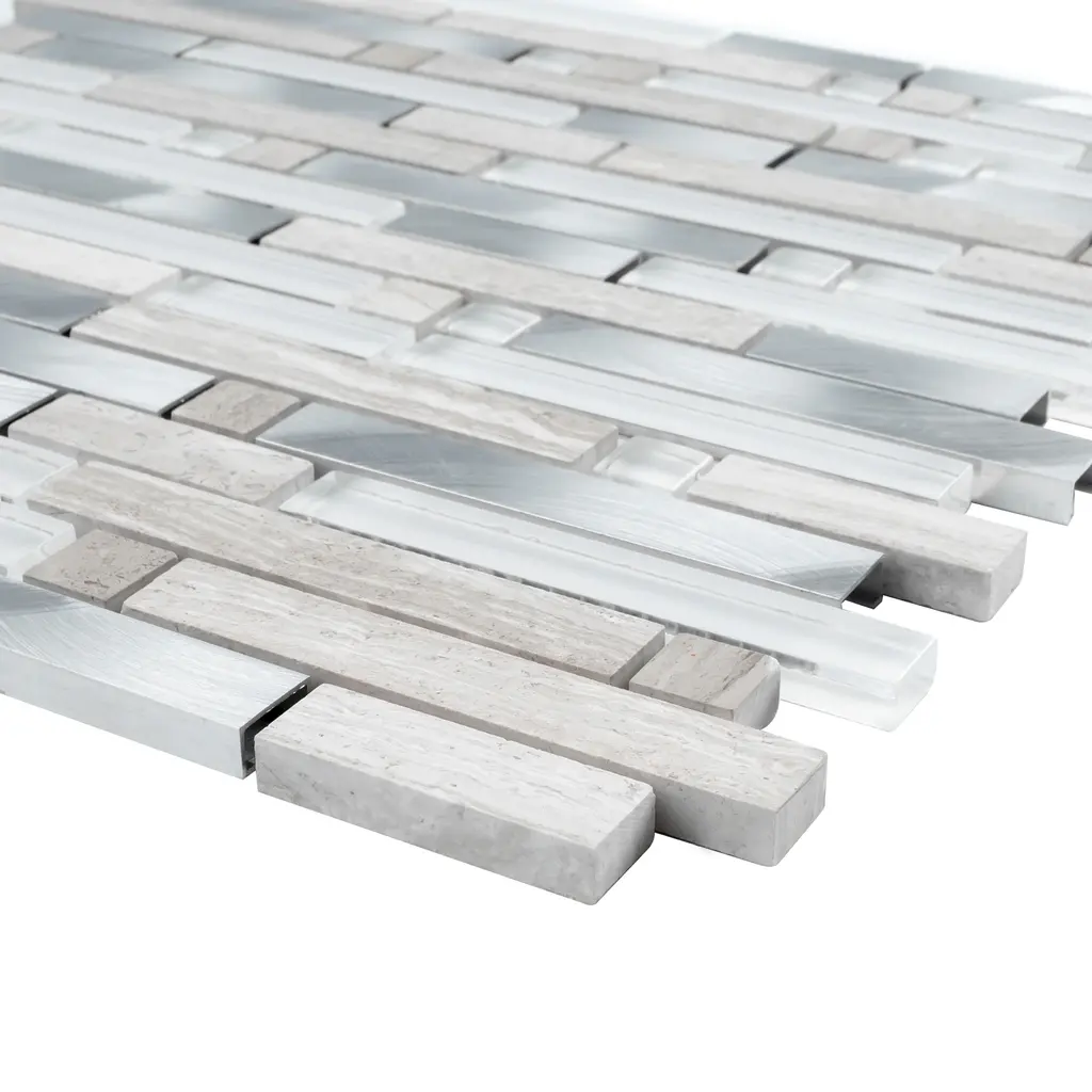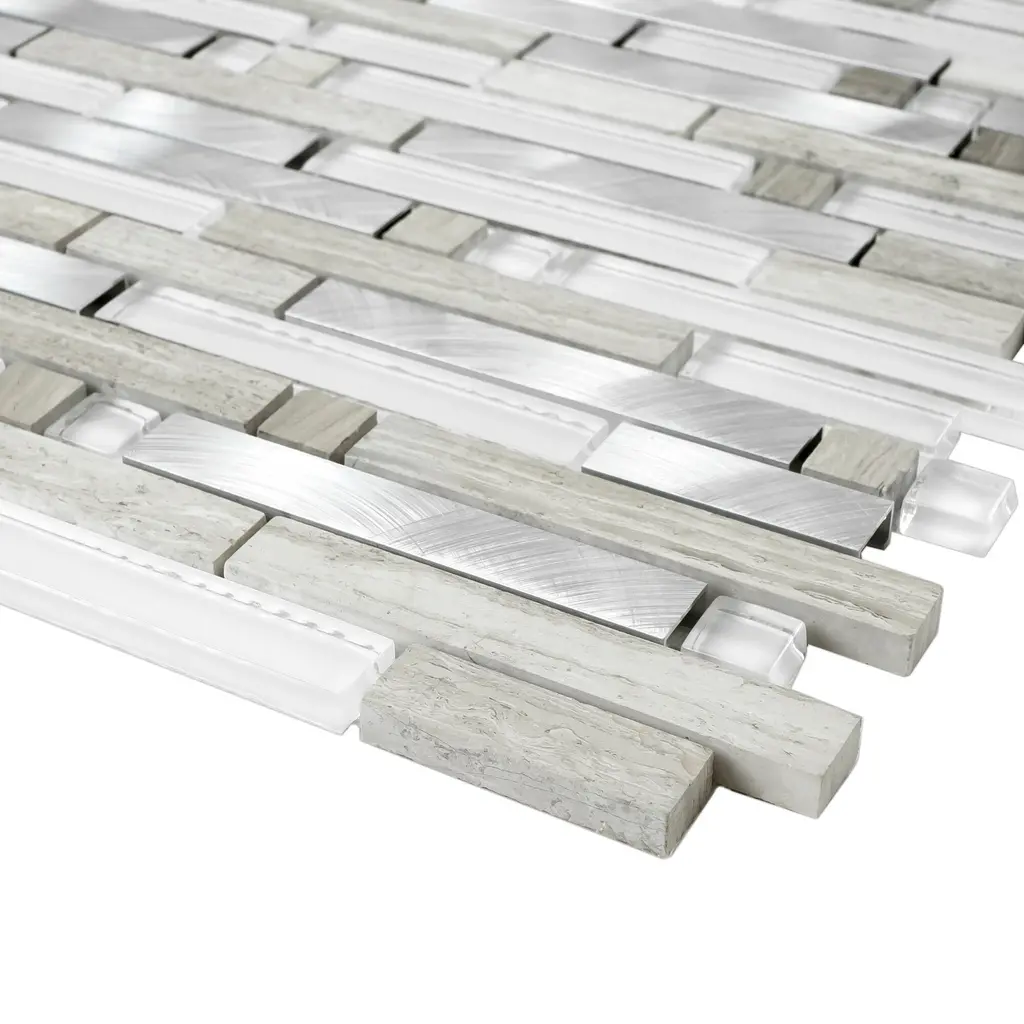 Tile Generation Series Thread Random Sized Mosaic Tile in Beige/White Wall Tile features glossy and matte metal look linear design. High-quality glass,marble and aluminum transforms your home into a magnificent space. The random linear creates beautiful layouts and designs when mixed and matched with other colors. It also features Low-maintenance and easy clean will make your life so much easier. This premium tile is an ideal and elegant look to your living room, kitchen and bathroom. Details The images have already display the most accurate color. However, color variation may still accurate due to the difference in computer monitor screen. All order will be shipped within 1-2 business days except large quantity order which is over 300 lbs will ship via freight carrier which might expect longer shipping time frame. Each item within an order will be selected from the same lot number which has no color or size variation, but multiple orders may cause receiving multiple lots of products. Please ensure that all tiles for a project is ordered within one order. If any reorder please email us by providing original order number to ensure receiving the same lot of product.