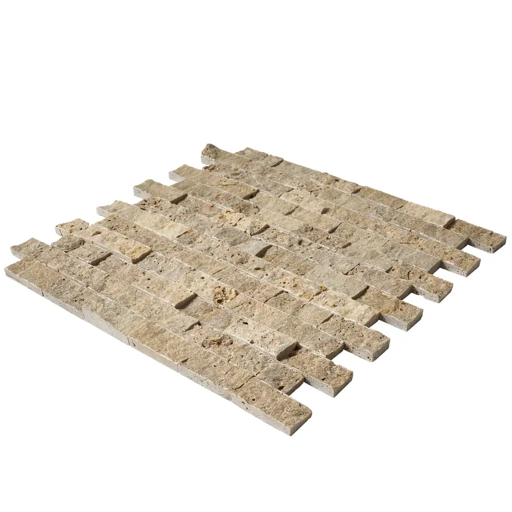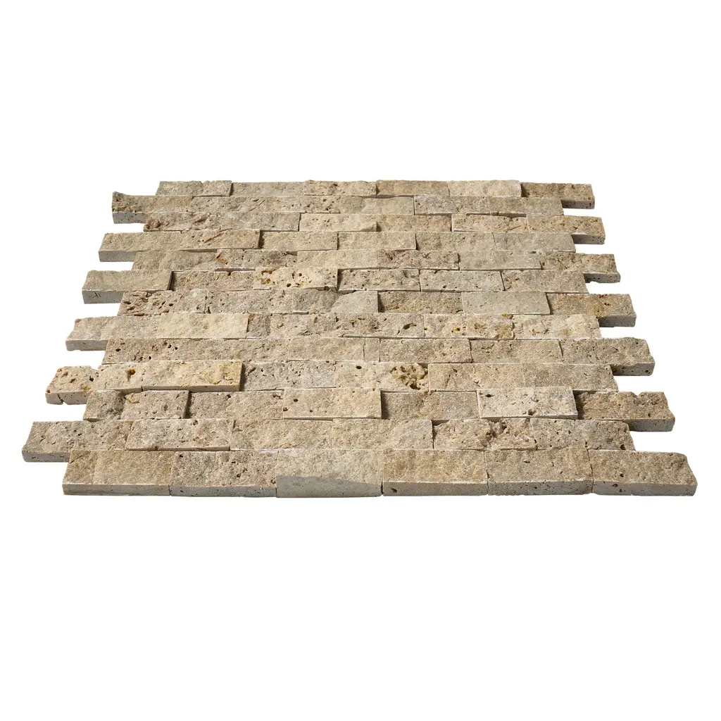 Tuscany Brown Travertine 1" X 2" Split Face Mosaic - Sample - Brown