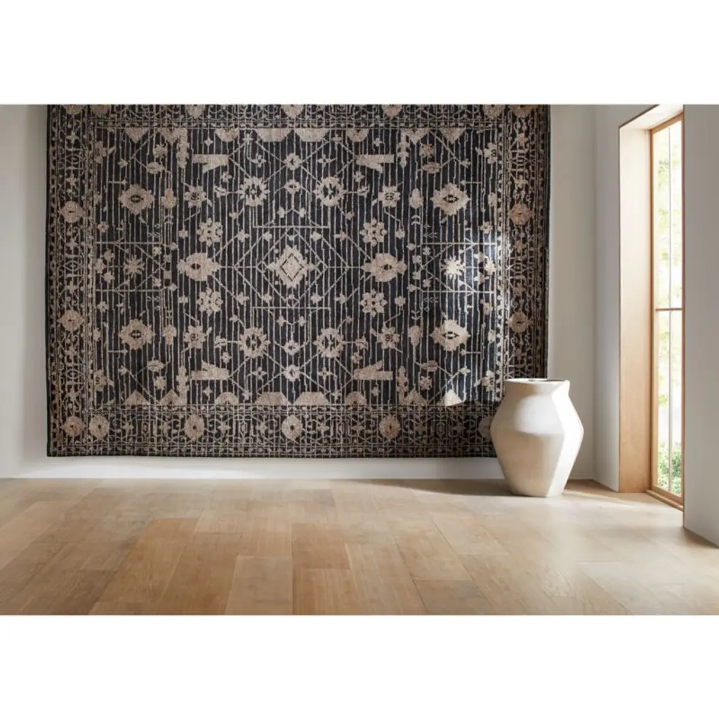 Try it on first. Because color representation may vary by screen, using a swatch is an easy way to see exactly how your favorite rugs will look in your home. Our rug swatches ship free and can be returned online or at store near you for a full refund. It's fast, easy and free.It takes talented artisans over a month to create the intricate botanicals and complex geometries of our Verona rug. Pure New Zealand wool - prized for its long, pliable fibers, lustrous sheen and incomparable softness - is knotted by hand into a unique floral pattern that suits traditional and contemporary spaces. The restrained palette of black and tan allows the rug's artistry to shine, while subtle flecks and tonal variations give the durable rug depth and richness.