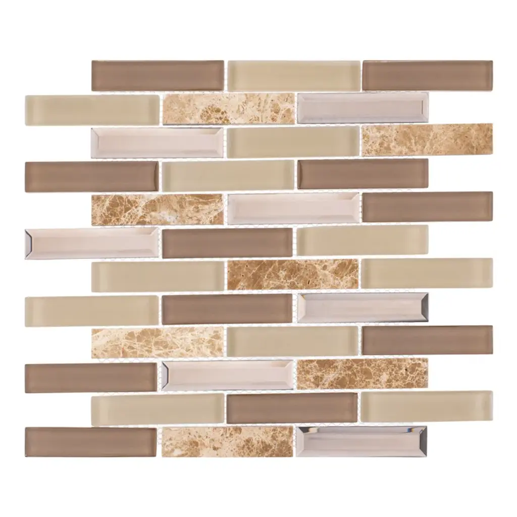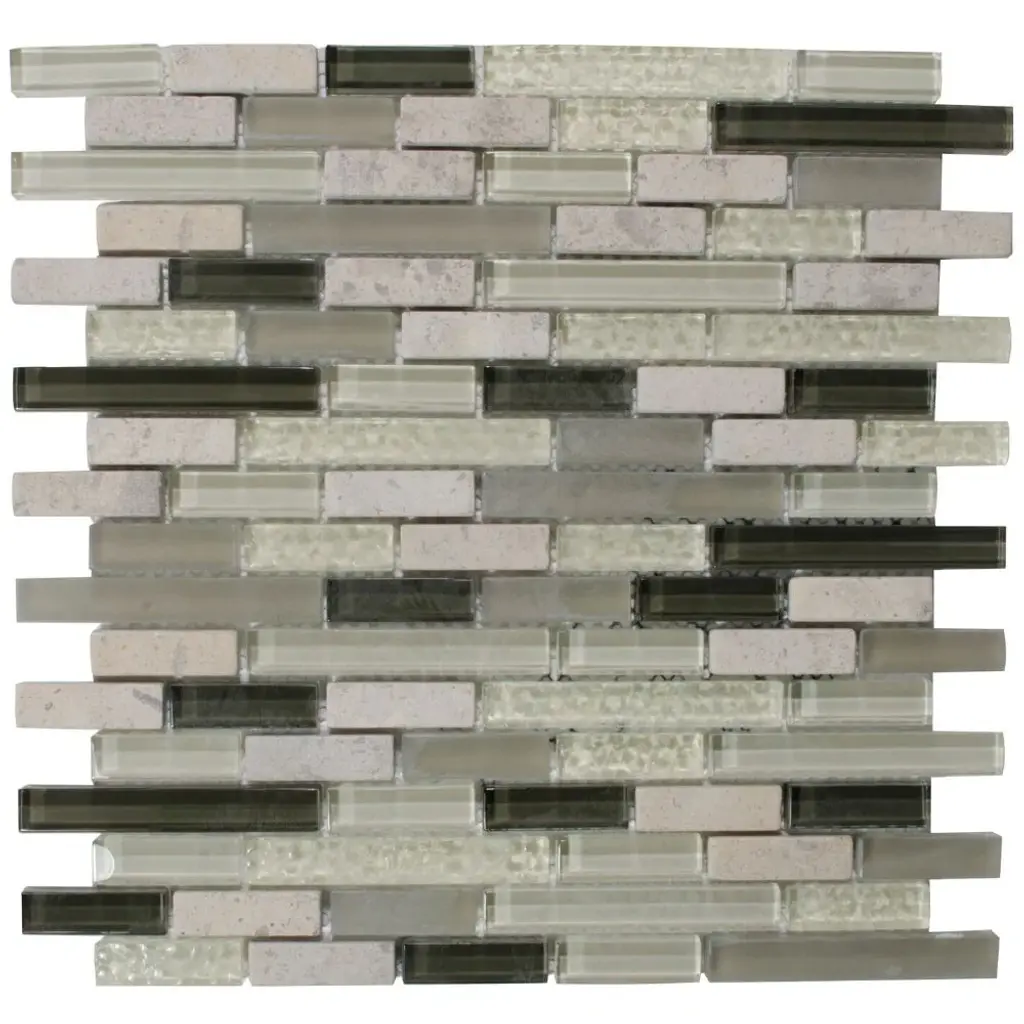 Our Victory Random Sized Glass Mosaic Tile is the perfect backsplash for your new bathroom renovation! Featuring sleek, thin, contrasting glass, this mosaic will be the focal point of the room. FEATURES: DIMENSIONS: