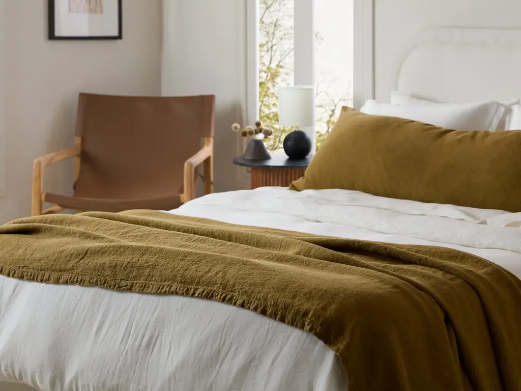 This timeless cover is made of thick, garment washed linen woven from 100% European flax for a vintage look and lived-in feel. The softly textured fabric is piece dyed in rich, nature-inspiredhues.