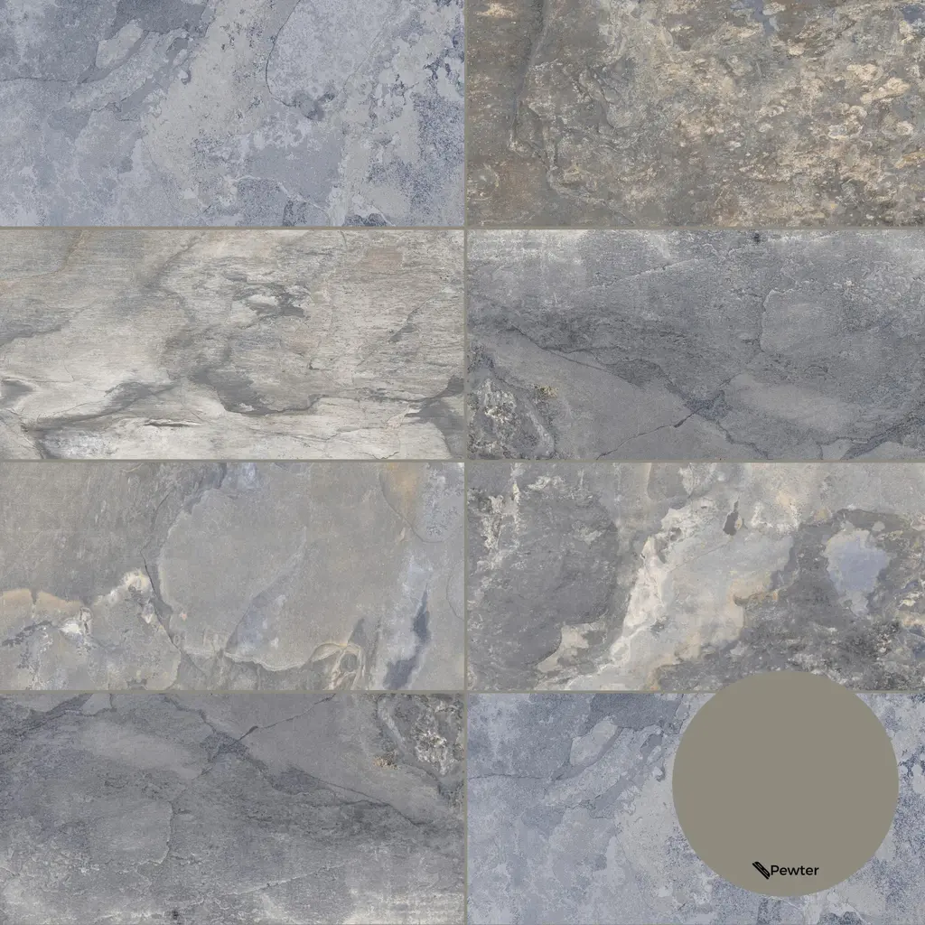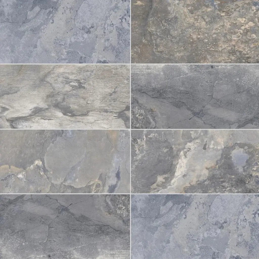 Directly from the slate quarry, this material stands out due to its appearance, texture, and now also thanks to its wide range of colors and extensive graphic variety. The Wells Stone series is a new take on a classic fan favorite. It comes in 12 inches x 24 inches non-rectified porcelain tile format, with matching 2 inches x 2 inches mesh mosaics and 3 inches x 24 inches bullnose to make a unique combo for ambitious projects that seek to generate vitality through the uniformity conferred by a single material. The Tile Life's Wells Stone collection is ideal for bathrooms, showers, kitchens, fireplace surrounds, outdoor spaces, floors, and walls. FEATURES:DIMENSIONS: