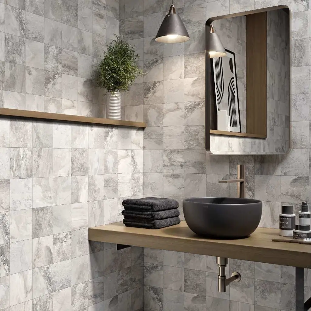 Directly from the slate quarry, this material stands out due to its appearance, texture, and now also thanks to its wide range of colors and extensive graphic variety. The Wells Stone series is a new take on a classic fan favorite. It comes in 12-in x 24-in non-rectified porcelain tile format, with matching 2-in x 2-in mesh mosaics and 3-in x 24-in bullnose to make a unique combo for ambitious projects that seek to generate vitality through the uniformity conferred by a single material. FEATURES: DIMENSIONS: