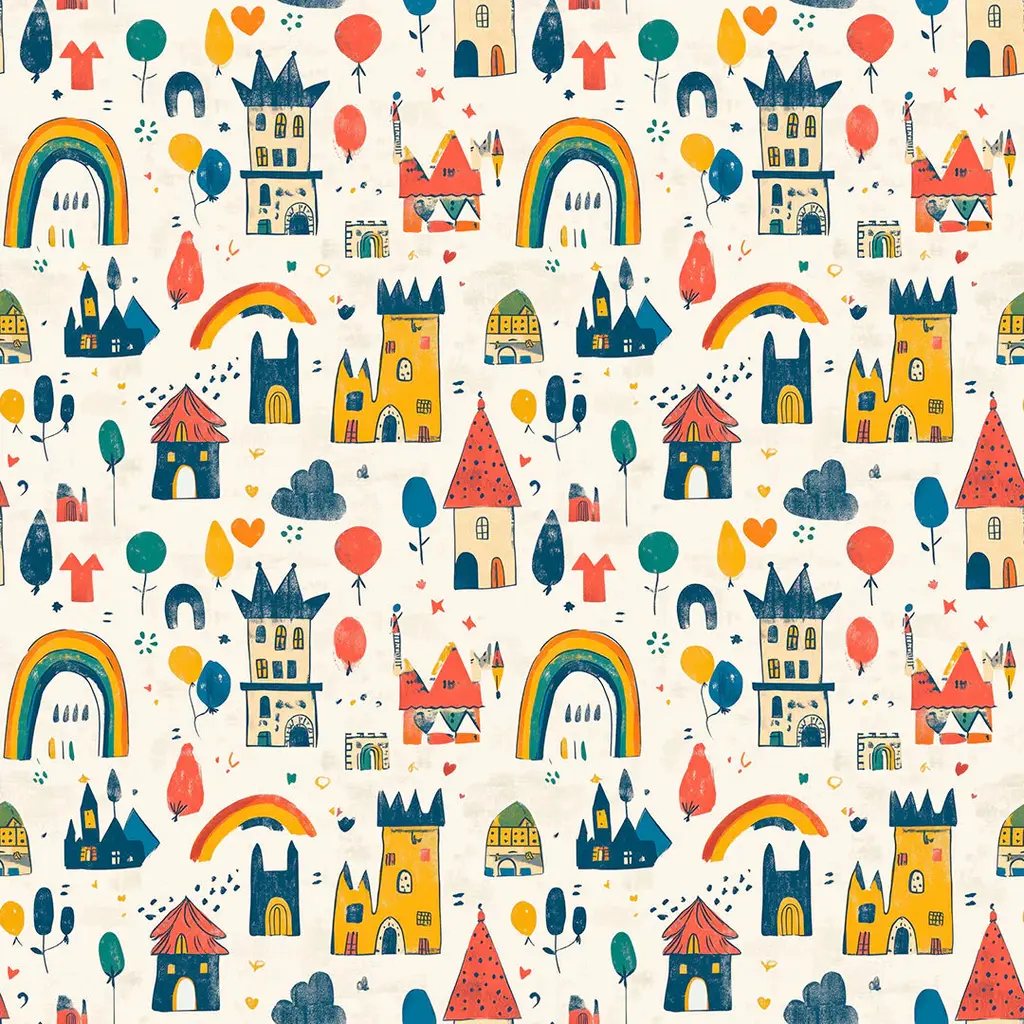 Whimsical Kingdom Adventure Wallpaper Spark your little one's imagination with this charming wallpaper, featuring a playful parade of hand-drawn castles, rainbows, and balloons. The delightful palette of mustard, teal, and red on a cream background creates a warm, magical atmosphere perfect for a nursery or playroom. You can select from a Peel and Stick Smooth or Canvas Texture Vinyl option, or choose Light Textured Peel and Stick Fabric Wallpaper or Pre-Pasted Traditional Paper. We offer a personalized touch for each order. Please provide the dimensions (height and width) of the walls you wish to cover, and we’ll assist you in calculating the number of wallpaper sheets needed for your project. We understand that managing the details can be overwhelming, but we're here to help! Each panel measures 2 feet wide by 4 to 10 feet high, so multiple panels will be required to cover an entire wall. Wallpaper Samples: We always recommend requesting a sample to assess how our wallpaper adheres to your selected surface and how the design fits within your space. Each sample is available in two formats: A full-size sample to demonstrate the scale of the print. A mini version of a complete 24”x72” sheet to provide an overview of the design pattern. Standard Wallpaper Sheet Sizes: 24" wide x 48" high / 61 cm x 122 cm 24" wide x 72" high / 61 cm x 183 cm 24" wide x 96" high / 61 cm x 244 cm 24" wide x 108" high / 61 cm x 275 cm 24" wide x 120" high / 61 cm x 305 cm Sizes outside those listed are considered custom sizes. Wallpaper sheets can be tailored to be shorter or longer to fit your space perfectly. CUSTOM SIZES and COLORS are available upon request. Please contact us, and we’ll gladly assist you! Every order includes a detailed application manual and installation guide. Panel Overlap: Our wallpaper panels feature a 1-inch overlap, in addition to the 24-inch width. We strongly recommend not removing this overlap during the installation of peel and stick wallpaper. When determining the number of panels required, please do not count the overlap, as it will be covered by the adjacent panel.