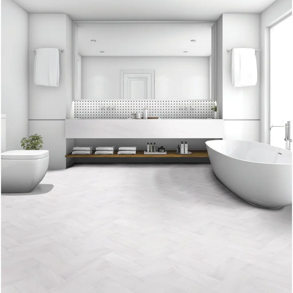 Winter White Marble 3"x9" Polished Tile is a tile that exudes modern and minimalist elegance. The polished finish creates a sleek and glossy surface that reflects light, making any space look brighter and more spacious. The pristine white color of this tile adds a sense of purity and simplicity to any room, while its subtle veining patterns give it a touch of character and texture. Whether used as a backsplash, shower wall, or flooring, 3"x9" Polished Tile complements a wide range of design styles, from contemporary to Scandinavian. Its high-quality material is durable and long-lasting, making it a practical choice for any home renovation project. Create a fresh and modern look with the simple beauty of 3"x9" Polished Tile.What's included?Product Details Sample Details