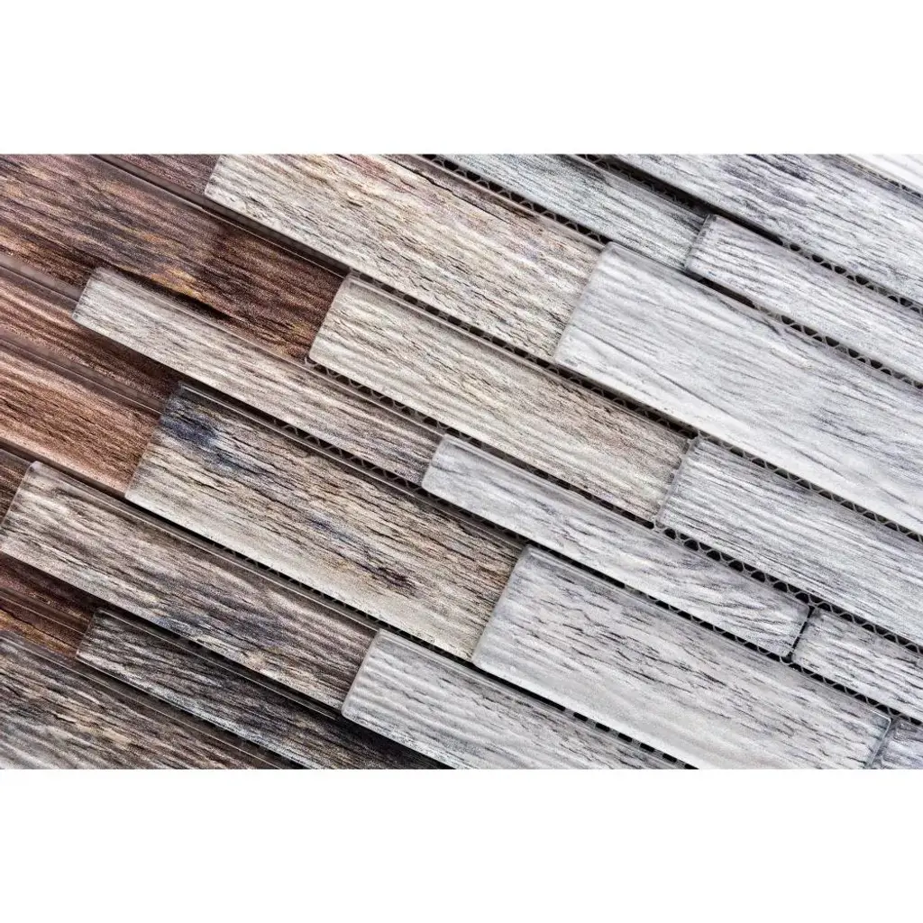 The look of wood with the beauty of glass! The Tile Life's Woodland series will bring a classic farmhouse look to your home. Add natural warmth and modern style with The Tile Life Woodland 1 inch x 3 inches Mixed Brick Glass Mosaic Wall Tile. Featuring a wood-look design in a linear, rectangular format, this matte, mesh-backed glass tile is easy to install and perfect for backsplashes, bathrooms, kitchens, and walls. Crafted with pressed, straight edges for a clean finish, it's an ideal decorative solution for residential and commercial indoor installations. Durable and stylish, this glass mosaic tile brings texture and visual interest to any space. FEATURES:DIMENSIONS:
