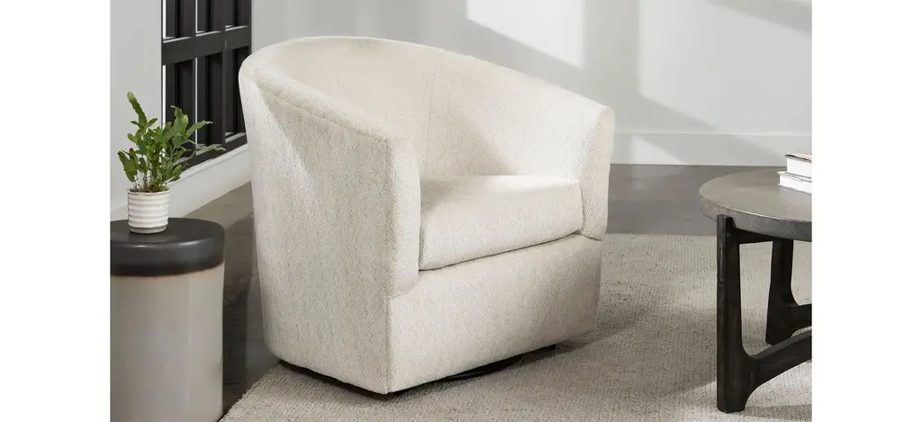 We're keen on the Keene Swivel Chair, and you will be too! Contemporary with soft, thick cushioning, it makes sitting for hours a treat! Lean in towards the conversation or swivel for the best view of the TV. You can't go wrong with this winning combination of comfort and style.