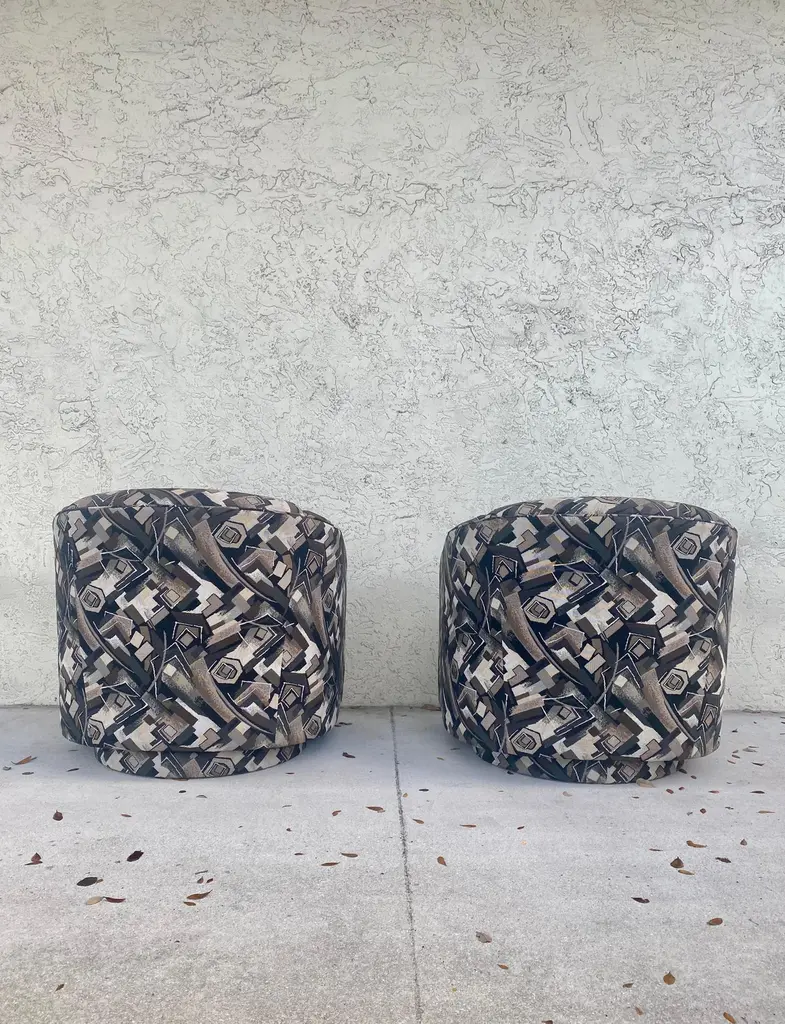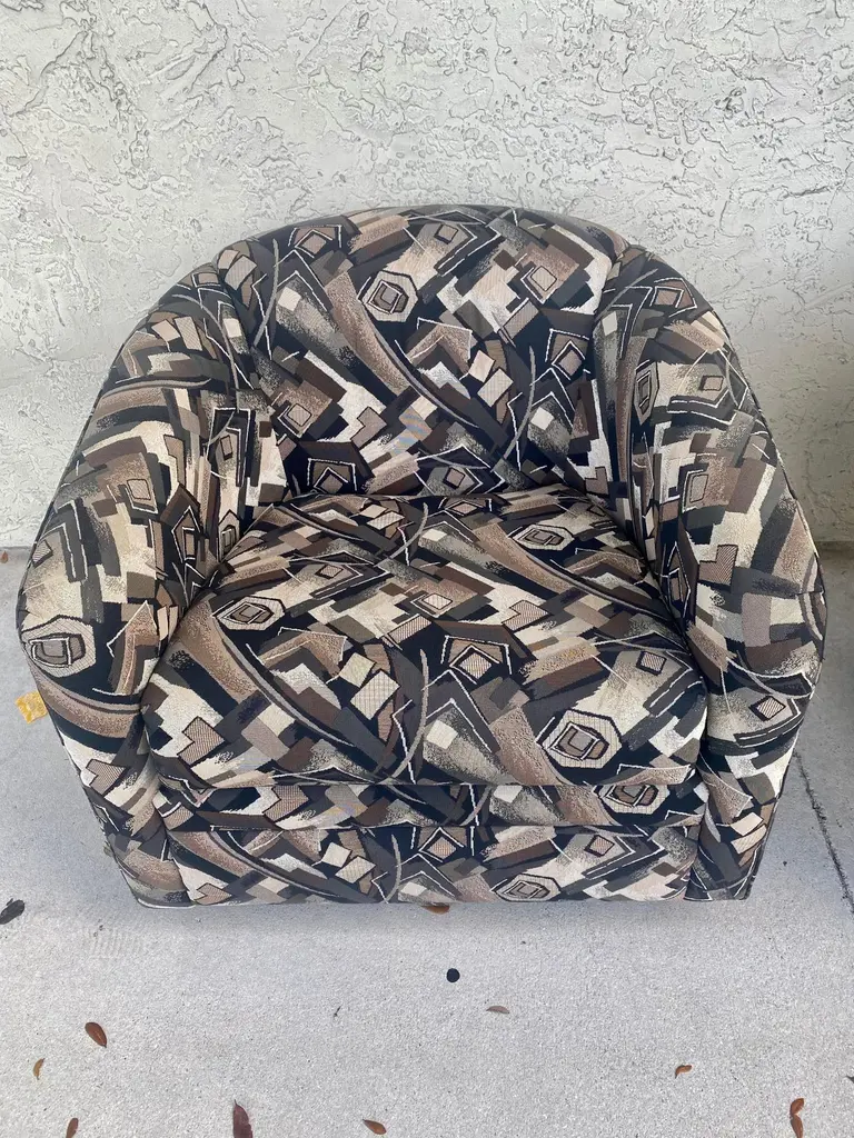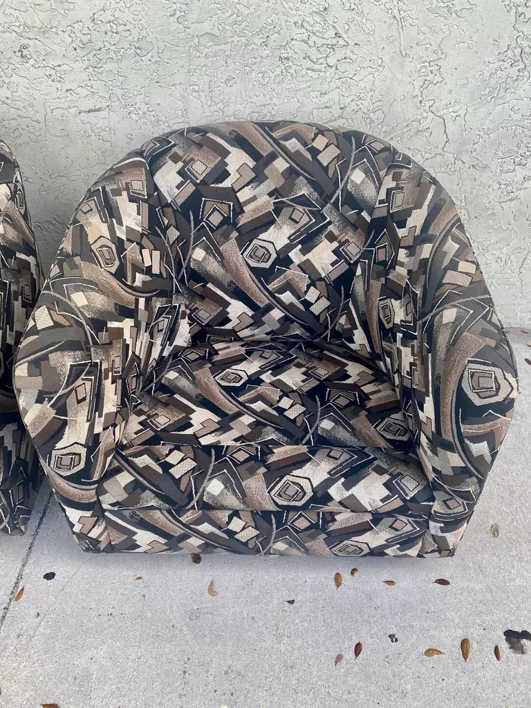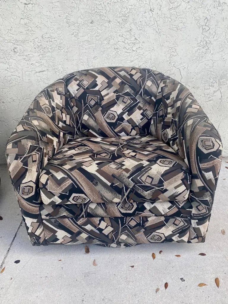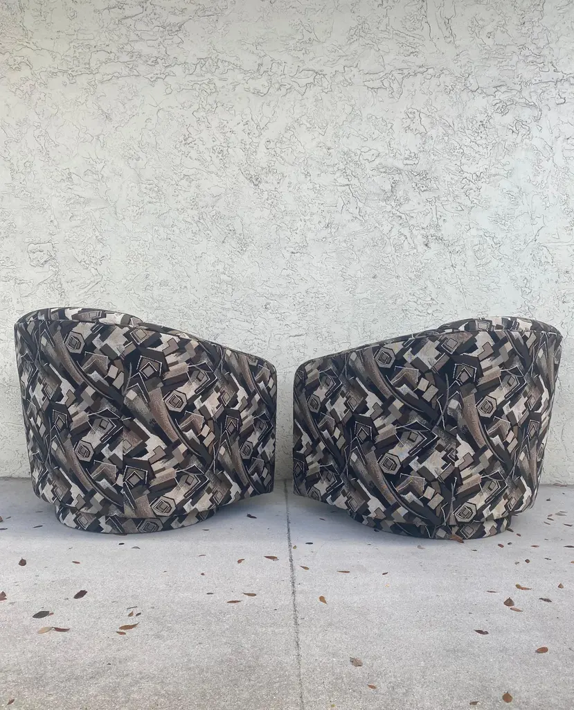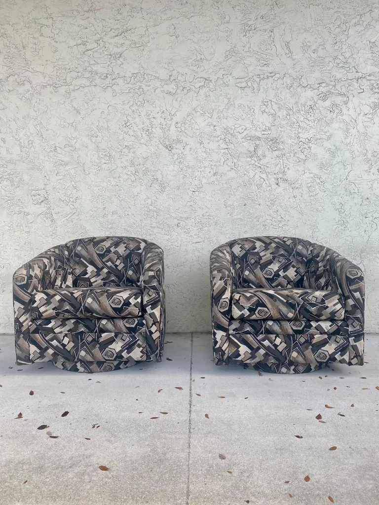 1980s Abstract Barrel Swivel Chairs Attributed To Milo Baughman - Set Of 2