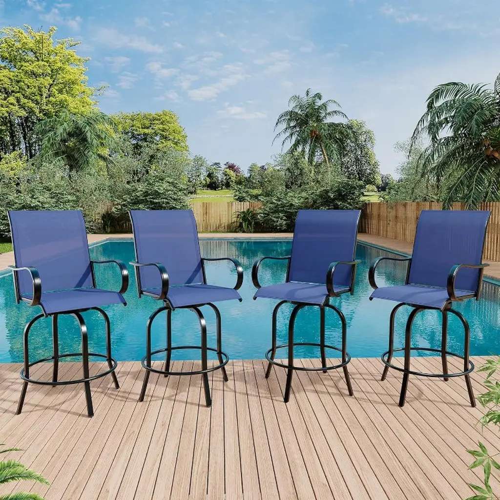 Patio swivel bar chairs will make the most of your terrace by adding this patio stools & bar chairs set to your ensemble. These simple yet stylish patio bar stools provide an ideal seating option for your outdoor space. They are perfect for indoor areas, as well as outdoor gardens, parks, patios, porches, poolside areas, and yards