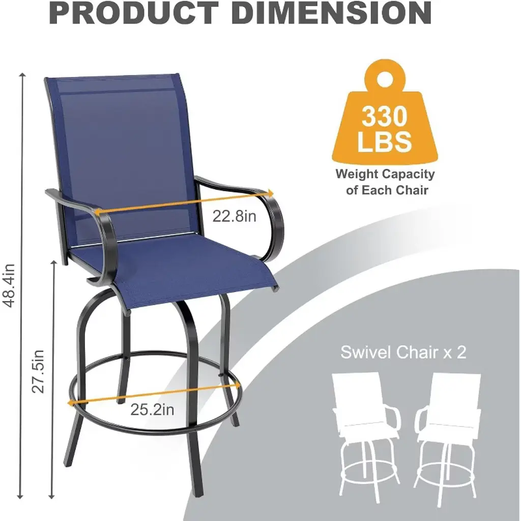 2 Piece Outdoor Swivel Bar Chairs, Patio High Swivel Bar Stools, All Weather High Back And Armrest Patio Chairs, Blue