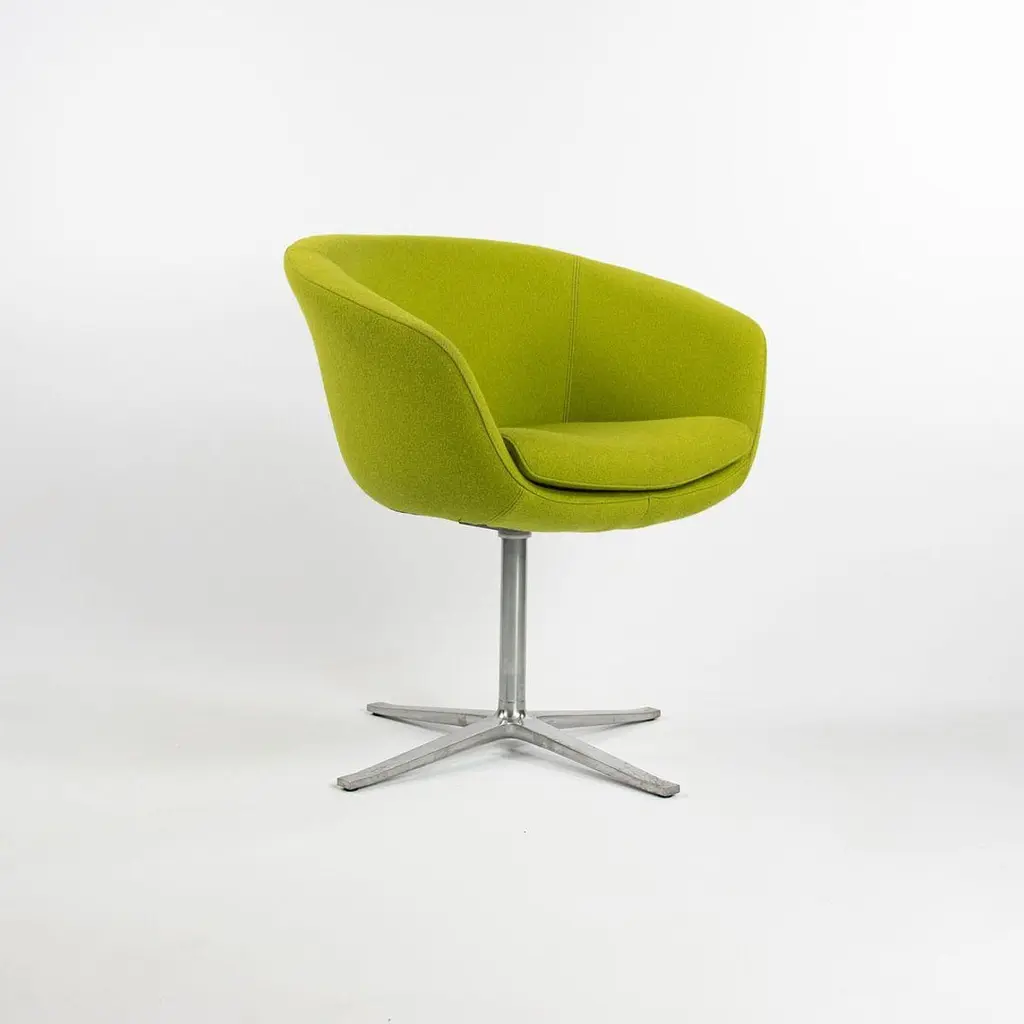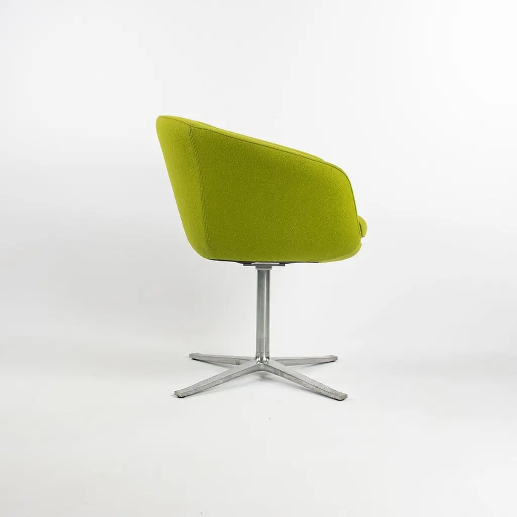 This is a Bob Guest Swivel Chair, Model 231, designed by Luke Pearson and Tom Lloyd for Coalesse / Walter Knoll in 2014. These chairs were manufactured in 2016. The listed price includes one chair, and we have two available for purchase. The chairs feature thick chartreuse / green fabric upholstery, and are mounted on 4-star swivel bases in aluminum. Each chair measures 25.25 inches long, 27.25 inches wide, and 29.75 inches high. Their seat height is 18.5 inches. The chairs' bases are in terrific condition, having only a few small scuffs. The fabric is clean and bright. Overall, these chairs are in very good condition with light wear apparent. Please see photos. Genuinely faulty goods will be replaced or money refunded on a case by case basis, however we must be advised of any faulty goods upon receipt of the item. It is the customer's responsibility to pay for return shipping and ship the item back to us. If the item is found to be faulty, we will also refund the postage cost. If there is no damage to the item, but a return is approved, the buyer will be responsible for both the initial and return shipping cost. It is at our discretion to refuse the refund of undamaged goods. If an order is placed and you would like to cancel the order, please notify us immediately. Any refunds will be processed via the same means that payment was made.