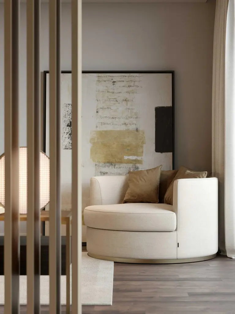 This oversized swivel chair easily blends into most mid-century modern or traditional-style home decors, with its timeless silhouette will add a contemporary touch to the space. The chair is offered in selection of fabrics and velvet upholstery, which comes in variety of color shades. The base in brushed golden brass expresses a modern and contemporary look. Its rounded shape and rotating structure provides absolute comfort. COM Requirements 9 Yards Fabric.Please contact us if you have any questions about customization and pricing. We will be glad to check with the factory’s technical team if sizes, finishes, and colors can be customized.We do our best to expedite production and to ship and deliver product within the listed lead time, however current lead times might be longer due to global shipping backlog and delays. These delays are out of our control and cannot be a reason to cancel an order.