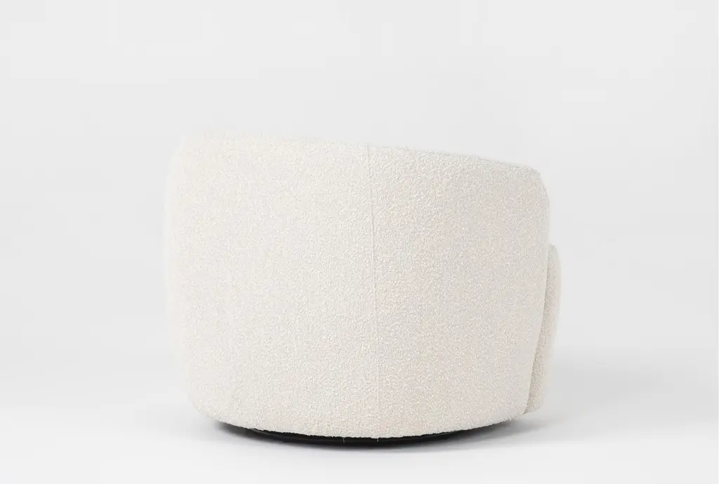 Abby White Boucle Fabric Swivel Barrel Arm Chair