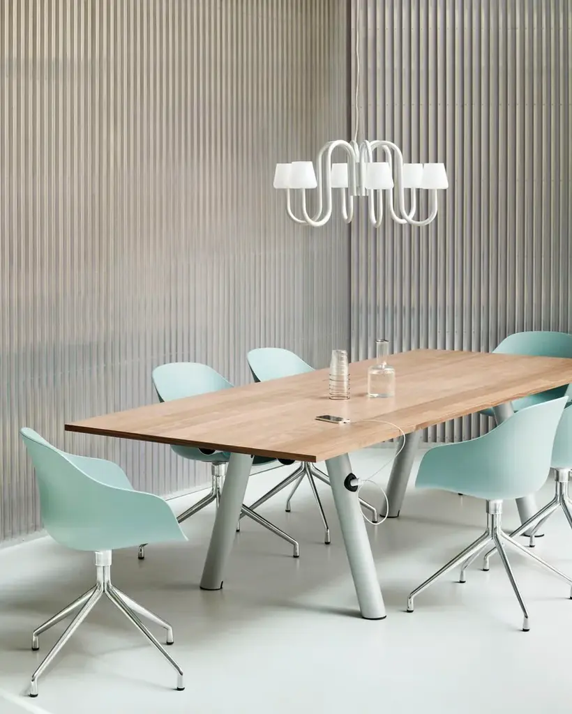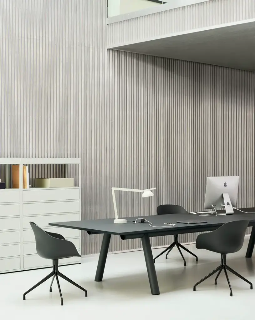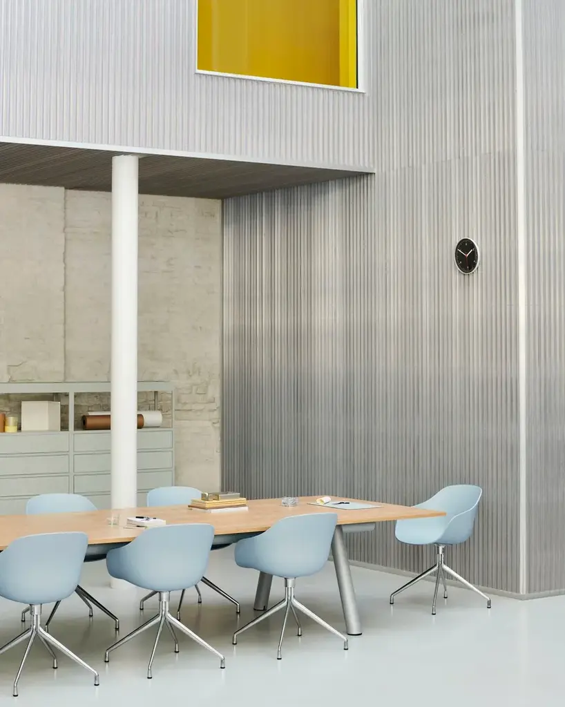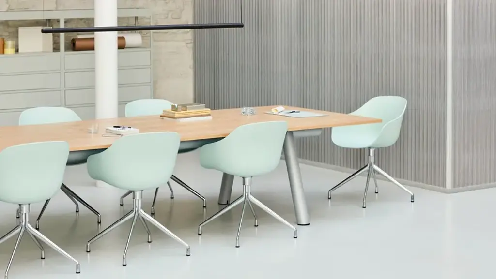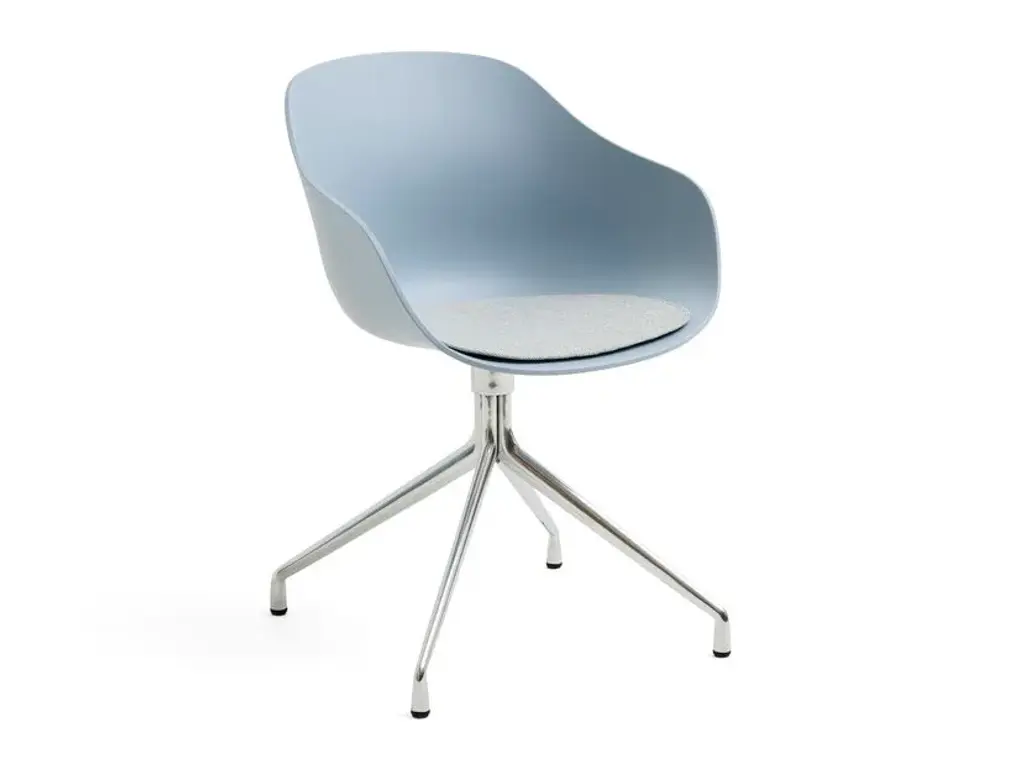 Featuring a swivel base in aluminium, the AAC 220 has a slightly more formal expression than the other variants in the series. Retaining the fundamental idea shared by the AAC collection, this model is characterised by a curved shell with a slightly higher back. Designed with optimal functionality in mind, the shell construction offers a deep, generous seat that combines inviting aesthetics with a high level of comfort, whilst the lower armrests provide good support and enable the chair to fit underneath a table or desk. The base is available in either polished or powdercoated aluminium, with the post-consumer recycled plastic shell offered in a wide palette of contemporary colours and multiple front upholstery options. The multitude of variants and design combinations give this series a versatile expression that makes it suitable for a wide variety of corporate, private, and public contexts.