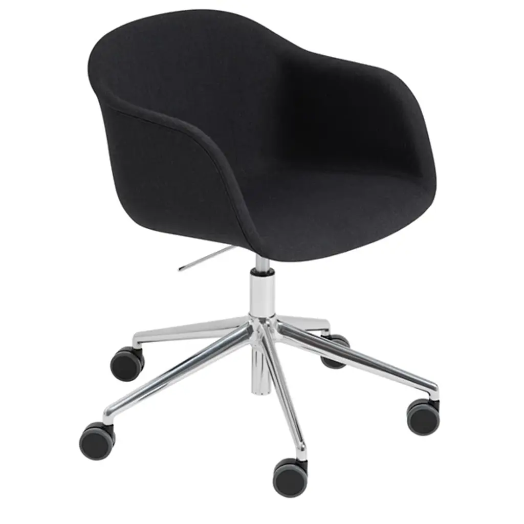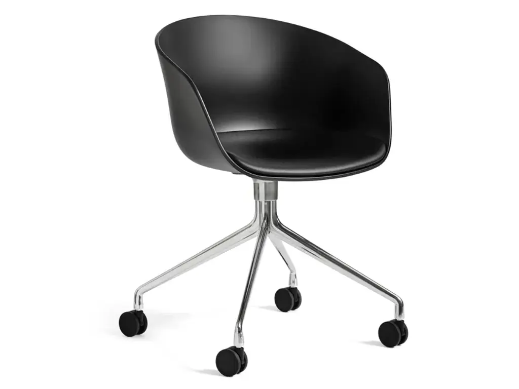 The solid rounded shell and unified silhouette of the About A Chair AAC 24 adds executive weight and brings a warm, welcoming expression to the otherwise functional and technical genre of office chairs. The swivel four-star castor base comes in various finishes, with the post-consumer recycled plastic shell offered in a wide palette of contemporary colours, along with multiple front or fixed seat upholstery options. The chair’s functional design combined with the castor base makes it particularly suitable for formal or official settings, and work-at-home offices.