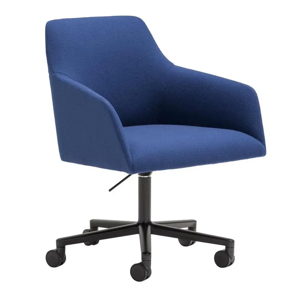 About A Chair AAC25 Soft by HAY combines a black painted aluminum swivel base with a plush padded seat. The soft quilted shell makes the chair super comfy and gives it a cozy, relaxed look. The About A Soft chairs are part of HAY’s About A collection, created in close collaboration with designer Hee Welling, featuring chairs with outstanding simplicity and combinability. With the About A collection, Welling wanted to reach a new level in the combination of shape, function, comfort, detail, and esthetics. The idea was to develop a chair that would work equally well around a dining table and a conference table, as well as in a restaurant, café or office. Due to their simple and straightforward design, the chairs can be combined with many types of furniture and interiors.