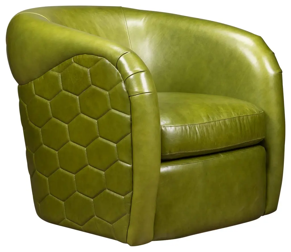 Discover the comfort and modern style of the 2305 A'Buzz swivel chair. This chair is designed with a unique hexagon shape, giving it a modern feel that will add sophistication to any living space. Its swivel design allows for easy movement and versatile use. Enjoy the perfect combination of functionality and style.W 30.5" * H 29.25" * D 36"Seat Width - 21.5"Seat Depth - 23"Seat Height - 18.5"Arm Height - 26.5"