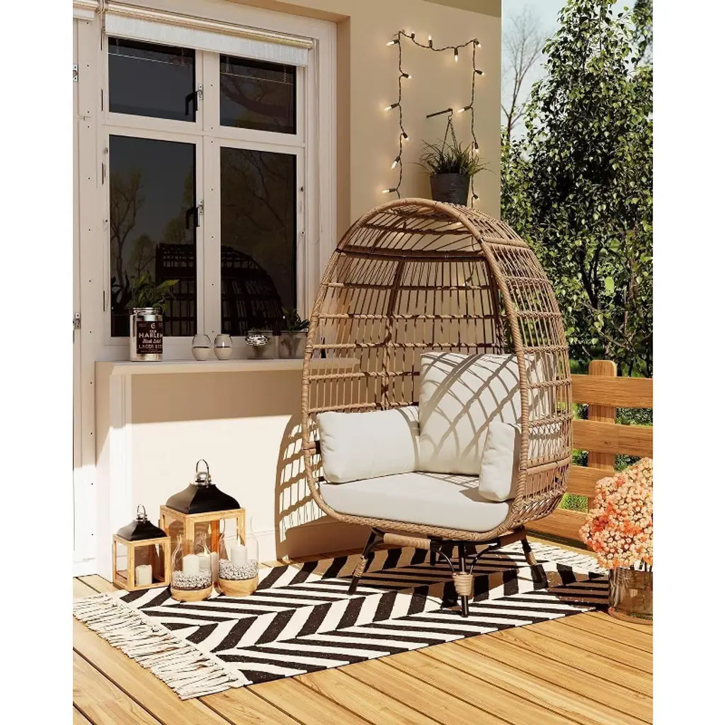 The Acekool 360° Swivel Egg Chair combines contemporary style with exceptional comfort for indoor and outdoor relaxation. Its generous proportions and thick cushion create a cozy nook for reading, relaxing, or casual conversations. The smooth rotation feature lets you easily adjust your view or position. Built for lasting use, the chair features a sturdy steel base with weather-resistant PE rattan weaving. The water-resistant cushion maintains its shape while standing up to outdoor conditions. Transition effortlessly between patio and living room with this versatile seating solution. Measuring 35" in diameter with a 65" overall height, the chair fits comfortably in various spaces while making a stylish statement. Straightforward assembly means you can begin enjoying your personal retreat almost immediately after unboxing. Dimensions: Seat: 35" diameter Overall: 35"W x 35"D x 65"H Cushion: 4" thick Base: 24" diameter steel Weight Capacity: 300 lbs Material: PE rattan, steel frame Color: Beige