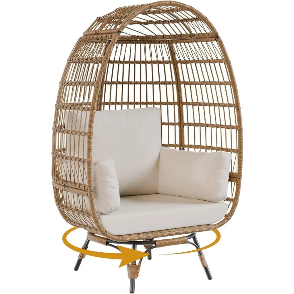 Acekool 360° Swivel Egg Chair With Cushion - Pe Rattan Lounge Chair For Indoor/outdoor Use,beige