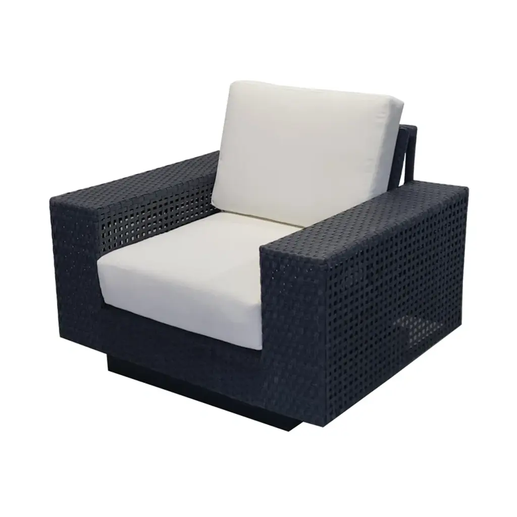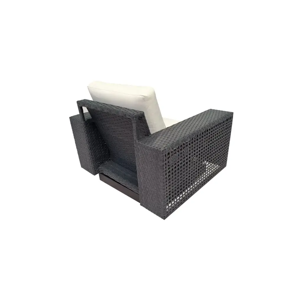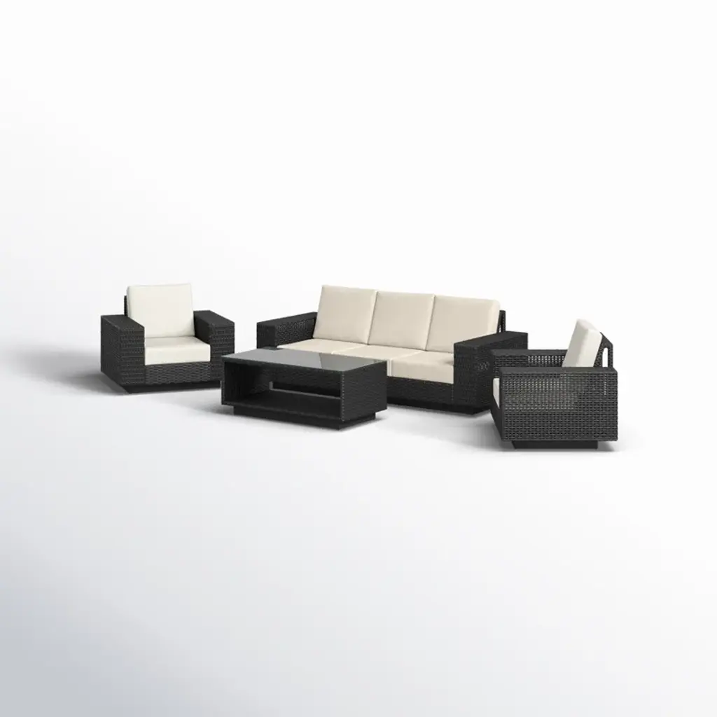 " This 4-piece patio furniture set includes two swivel club chairs, a patio sofa, and a coffee table designed to transform your outdoor space into a haven of comfort and style. The set comes with Sunbrella performance cushions. Whether you're hosting a gathering or simply enjoying a quiet moment outdoors, this 4 piece patio set offers comfort, style, and durability that will enhance any outdoor living space.