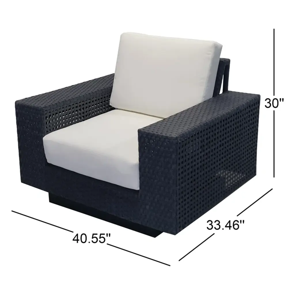 This patio swivel chair is designed to transform your outdoor space. Crafted with durability in mind, the sturdy aluminum frames of this patio set are rust-free, ensuring long-lasting performance and protection. The chair comes with Sunbrella fabric cushions designed to withstand outdoor elements. The wicker complements the overall aesthetic, seamlessly blending traditional and modern elements. Whether you're hosting a gathering or simply enjoying a quiet moment outdoors, this chair offers comfort, style, and durability that will enhance any outdoor living space. Best of all, the chair comes fully assembled to enjoy immediately.