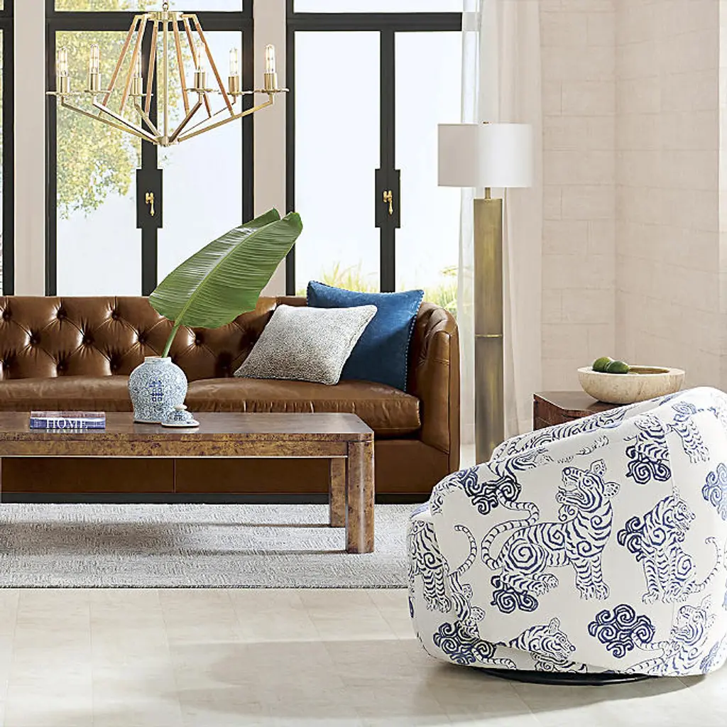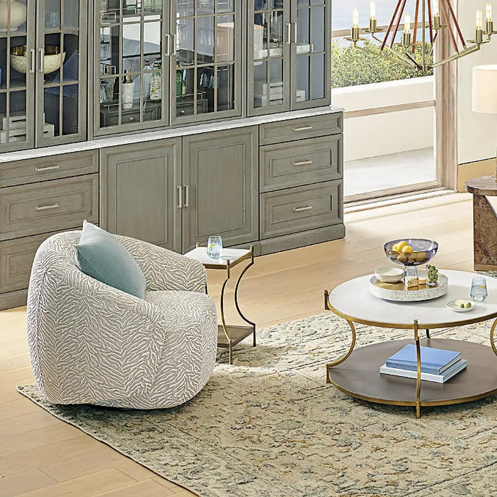 A curving, enveloping silhouette creates an inviting seat with timeless modern style. Our Addy Swivel Accent Chair is handcrafted and fully upholstered in your choice of high-quality fabrics. A swivel base adds extra functionality. Premium Upholstery Collection Hardwood frame Webbed construction with polydacron foam Fully upholstered seat, back and arms Velvet naturally ages over time, resulting in light marks or bruising that add to its character and sheen Performance fabric resists stains and repels water and oils, ensuring easy cleaning Leather is a natural material, retaining character marks and subtle shade variations; no two pieces are exactly alike Performance leather is treated to reduce scratching, fading, staining and color variation On leather option, velvet decking and cushion underside allow air to flow from the cushion through the decking Swivel base Handcrafted in USA At Frontgate, our primary focus is quality. We guarantee that every product we sell will stand up to the supreme test – our customers' satisfaction. To learn more about our policies, visit our Shipping & Processing, Returns & Exchanges and Warranty & Price Guarantee pages. A curving, enveloping silhouette creates an inviting seat with timeless modern style. Our Addy Swivel Accent Chair is handcrafted and fully upholstered in your choice of high-quality fabrics. A swivel base adds extra functionality. Premium Upholstery Collection Hardwood frame Webbed construction with polydacron foam Fully upholstered seat, back and arms Velvet naturally ages over time, resulting in light marks or bruising that add to its character and sheen Performance fabric resists stains and repels water and oils, ensuring easy cleaning Leather is a natural material, retaining character marks and subtle shade variations; no two pieces are exactly alike Performance leather is treated to reduce scratching, fading, staining and color variation On leather option, velvet decking and cushion underside allow air to flow from the cushion through the decking Swivel base Handcrafted in USA At Frontgate, our primary focus is quality. We guarantee that every product we sell will stand up to the supreme test – our customers' satisfaction. To learn more about our policies, visit our Shipping & Processing, Returns & Exchanges and Warranty & Price Guarantee pages.