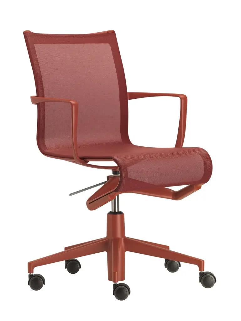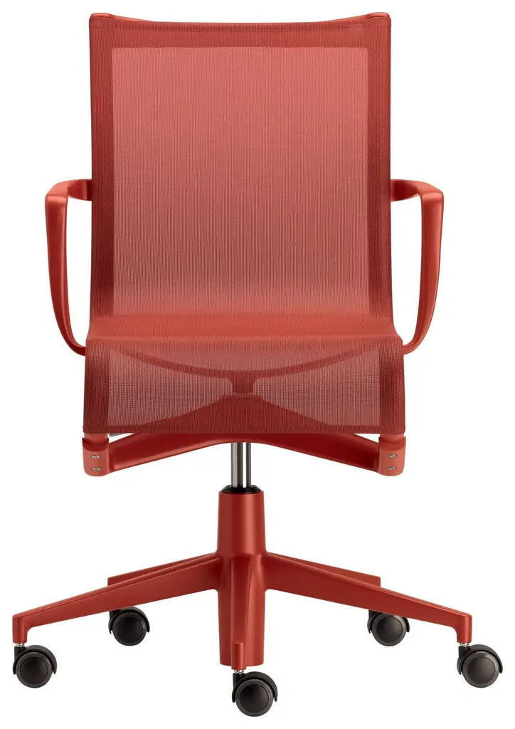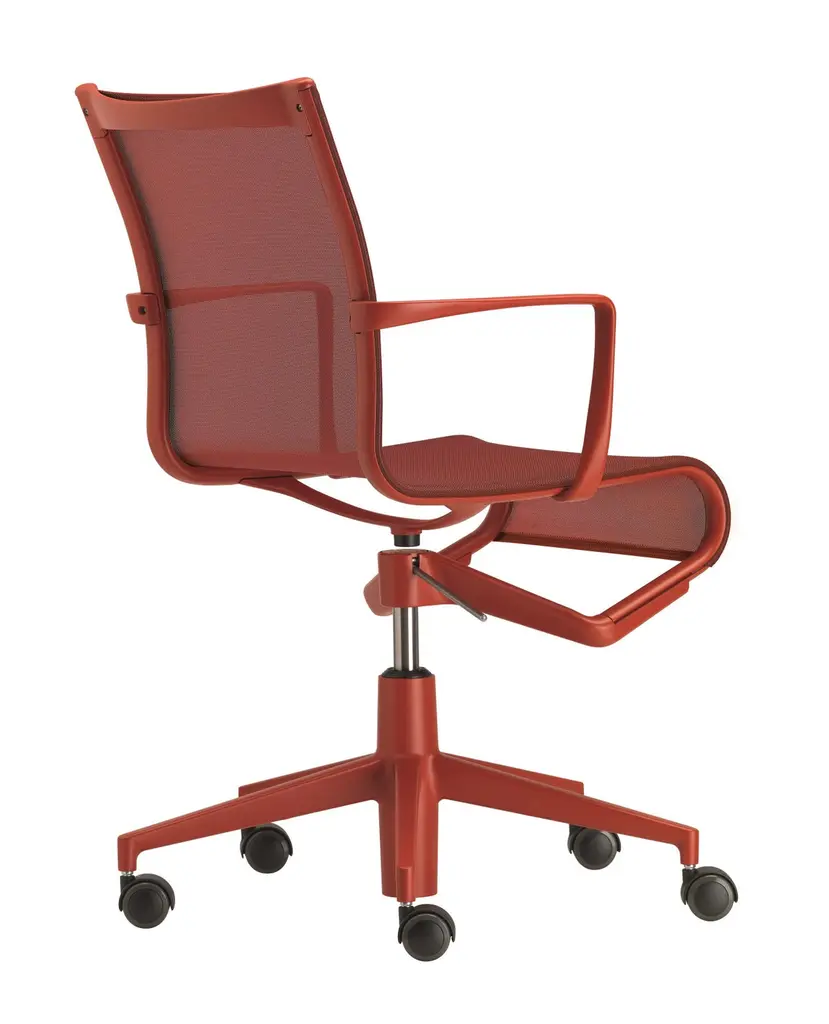 Alias 434 Rollingframe 44 Chair Coral Red Mesh and Red Lacquered Aluminum Frame by Alberto MedaHeight adjustable chair with arms, with soft (or hard or soft breaking ) castors and 5-star swivel base. Structure made of extruded aluminium profile and diecast aluminium elements. Seat and back in fire retardant PVC covered polyester mesh, in eco leather Serge Ferrari®, in fabric Camira® or Kvadrat® or in Pelle Frau® leather Born in Lenno Tremezzina (Como), in 1945, he graduated in mechanical engineering from the Milan Polytechnic. In 1987 and 1989 he designed two historic chairs for Alias: lightlight and softlight. The former is on show in the permanent collection in the MoMA in New York. The first Alias chairs in the frame range date from 1994. These were followed in 2003 by frametable, in 2007 by the out collection teak, in 2009 by the biplane table and in 2011 hydrochiar. In 2013, the oscillating tilt mechanism was introduced on the plus versions of the rolling frame and meeting frame chairs, later to be enhanced by a new soft finish in 2015. He lives and works in Milan.Additional Information:Material: Aluminum, meshUpholstery finish: Mesh B Coral Red (R024)Frame finish: Coral Red (A041)Dimensions: 73 W x 73 D x 86-96 H cmSeat height: 43-53 cm Available in other frame options: Polished (AB), chromed (CR), white (A019), black (A011), graphite grey (A022), sand (A047), “cipria” sand (A039), aubergine (A042), light grey (A051)Available in other upholstery finish options: White - only for lacquered and chromed versions (R009), black (R007), grey melange (R028), “cipria” sand (R011), light grey (R003), dark grey (R006), aubergine (R025), metallic grey (R020), Stamskin® Top, Urban, Xtreme, Maple, Remix, Tonus, Canvas, Divina, Foss, Hallingdal 65, Hero, Steelcut, Steelcut Trio, SC ColorSphere®: white SC04 latte - for lacquered and chromed versions only (B004), black SC 20 inchiostro (B020), grey SC26 topo (B026), brown SC56 siena (B056), brown SC57 torba (B057), brown SC80 bruno havana (B080), other colors available on request.Available in other various options
